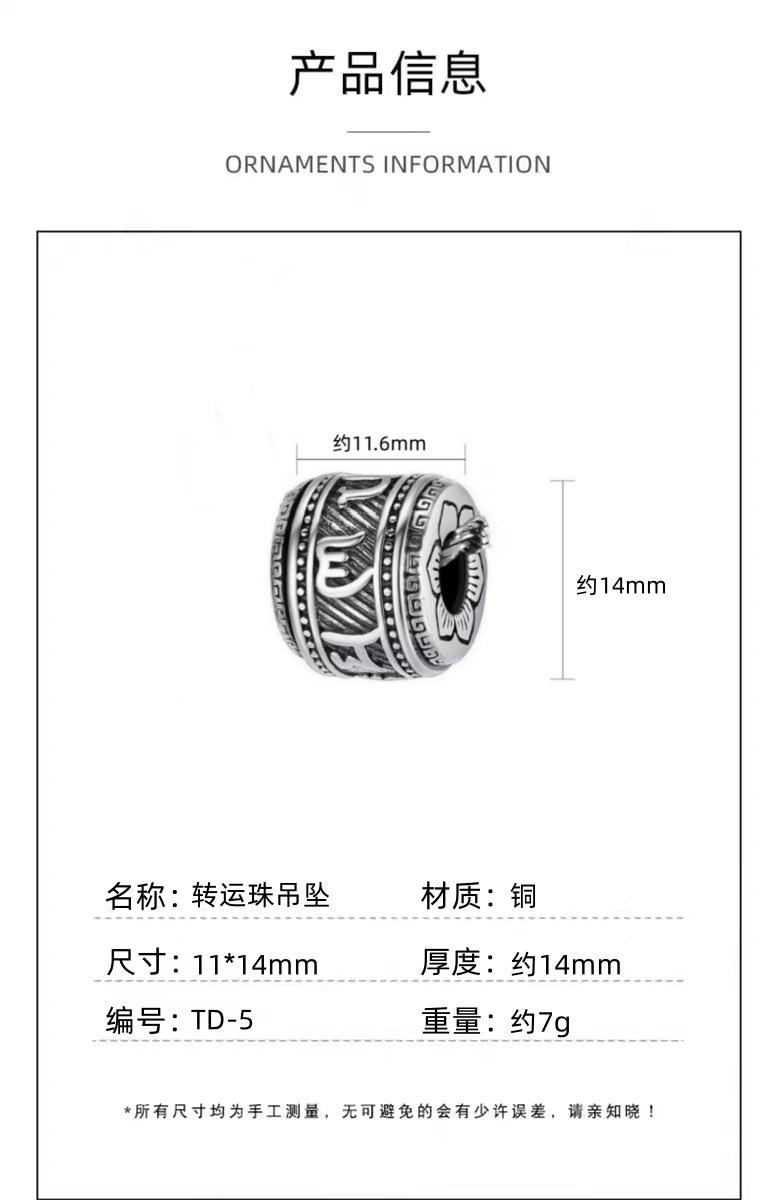 "td-5 ""six-character mantra transport beads"": chain not included", Td-6 pendant: chain not included, String ...