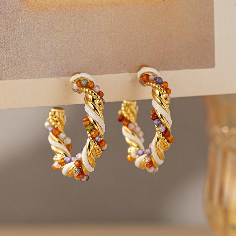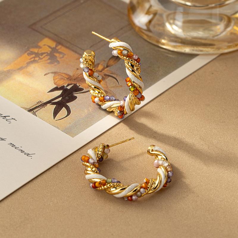 Pendientes giratorios de lujo ligeros de alta gama con anillo en C y diseño de nicho, pendientes de cristal de color temperamento para mujer, venta al por mayor