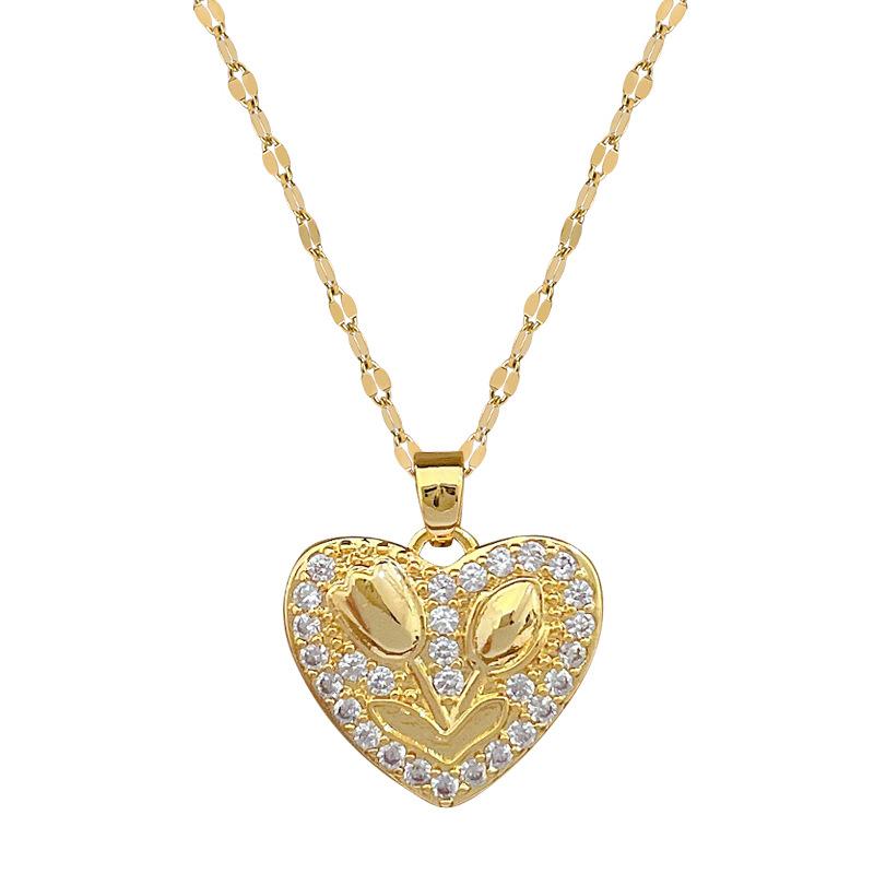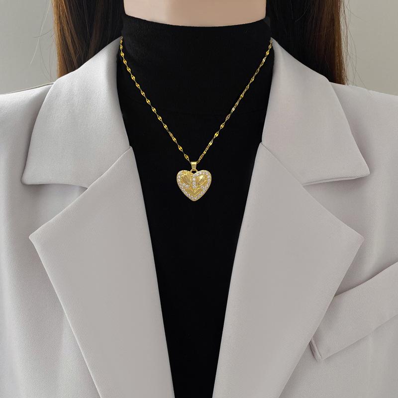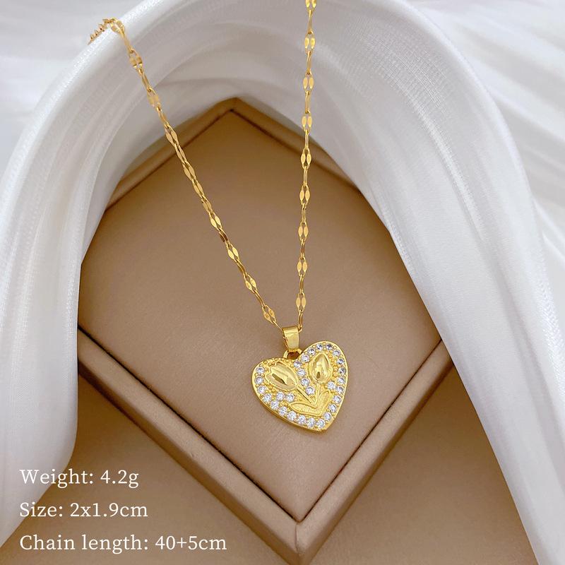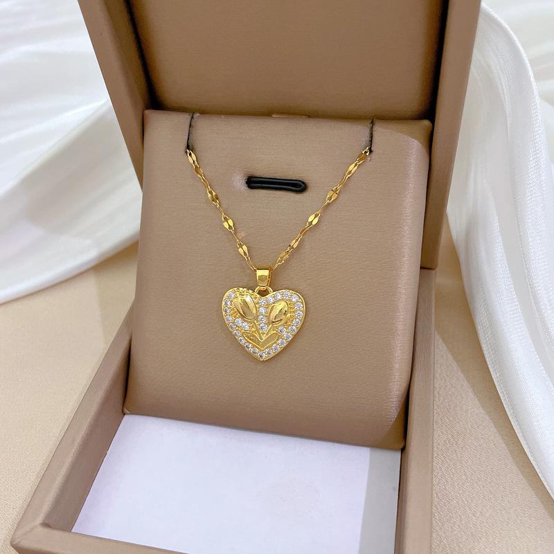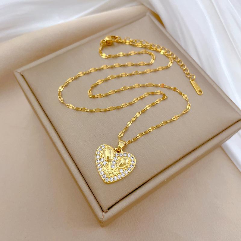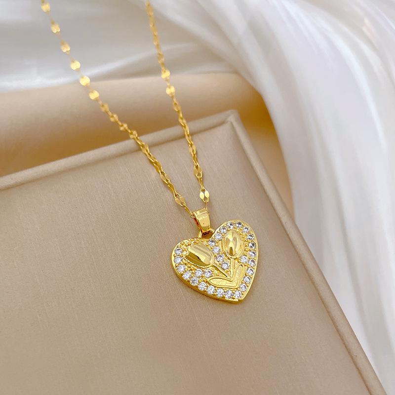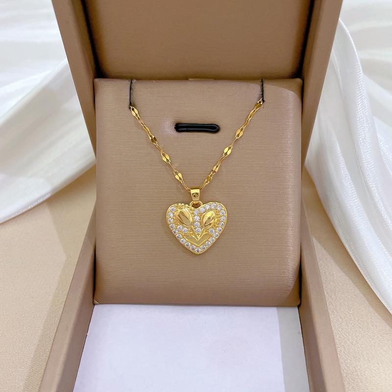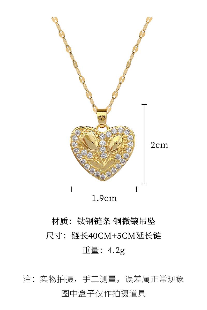 [Acero titanio] Collar elegante y lujoso con diamantes de imitación de rosa de amor para mujer, cadena de clavícula de acero titanio que combina con todo.