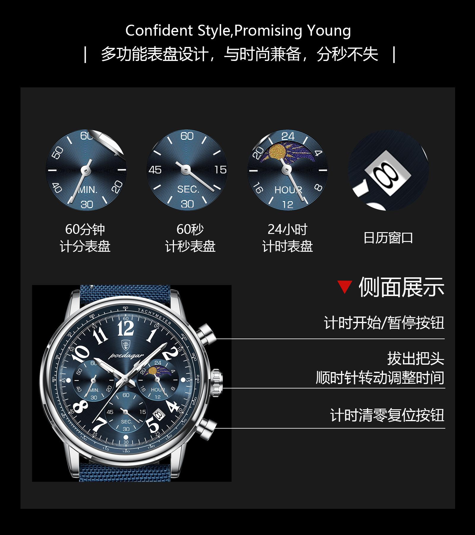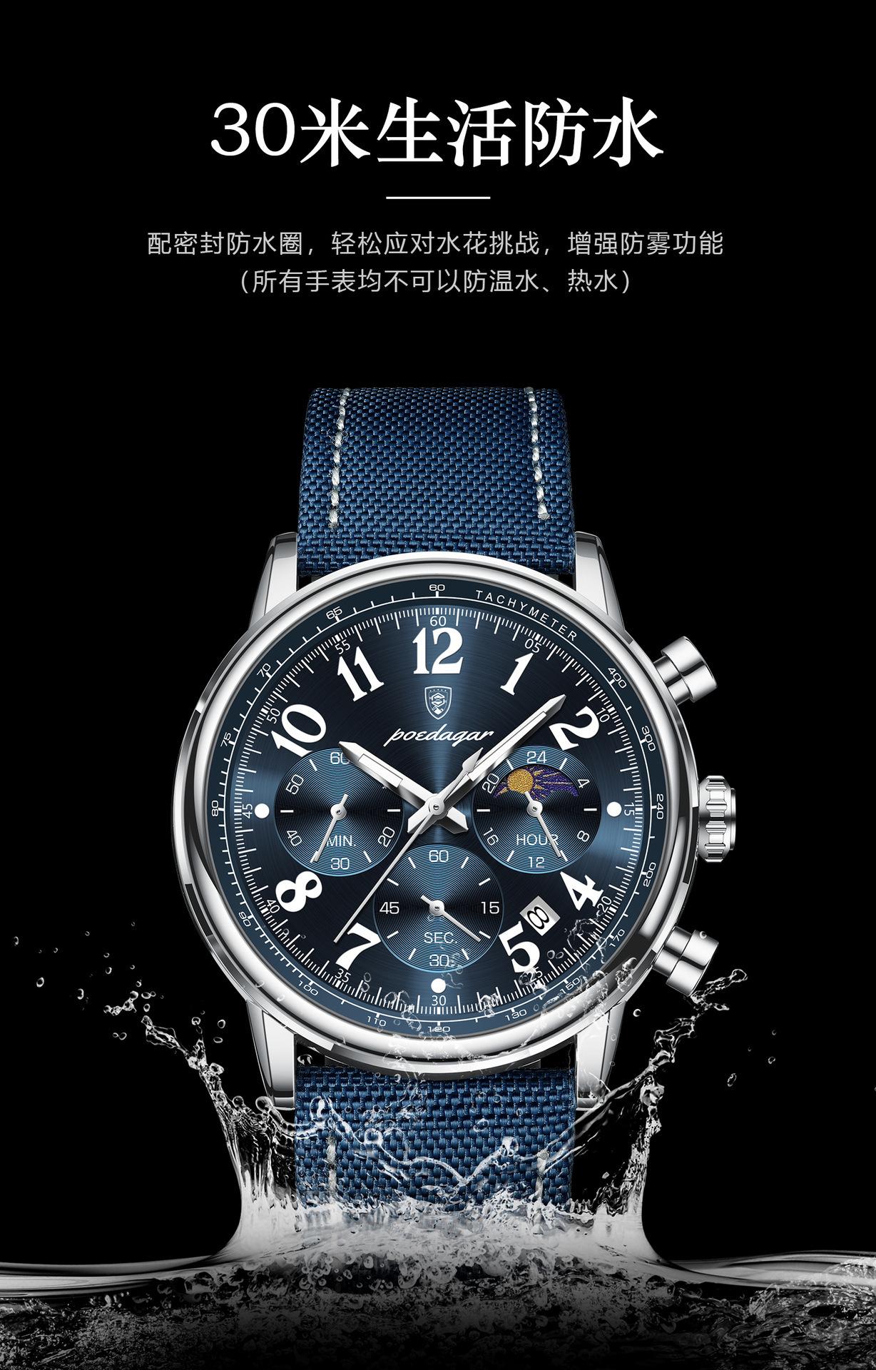 4. Los relojes resistentes al agua son resistentes al agua en el día a día, pero no se pueden usar para nadar ni bucear. Se recomienda no usarlos para bañarse para evitar cortocircuitos u oxidación de las bobinas del movimiento tras la entrada de agua, lo que podría afectar la hora del reloj.