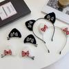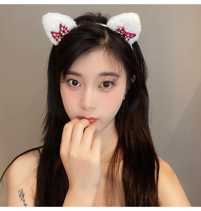 Lindo aro con orejas de gato y lazo, campanilla para el pelo, para lavarse la cara, súper hada con horquilla tridimensional de peluche