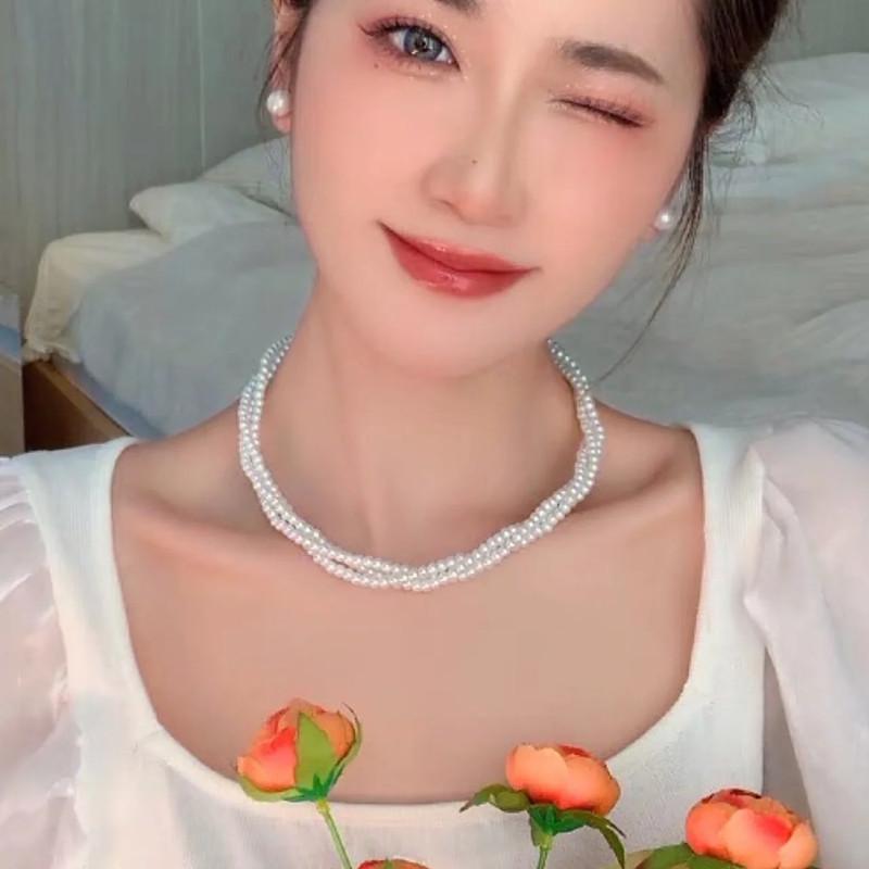 Compra Collar de perlas multicapa, elegante y de alta calidad, con diseño sinuoso, estilo nicho de lujo ligero y popular, para mujer. al por mayor en Joom.pro