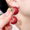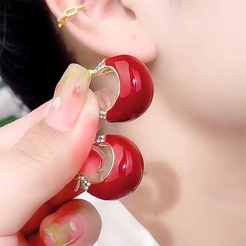 Pendientes sencillos de estilo francés con forma de gota de esmalte rojo, nuevos pendientes con diseño de nicho y hebilla de oreja elegantes, ligeros y de lujo.