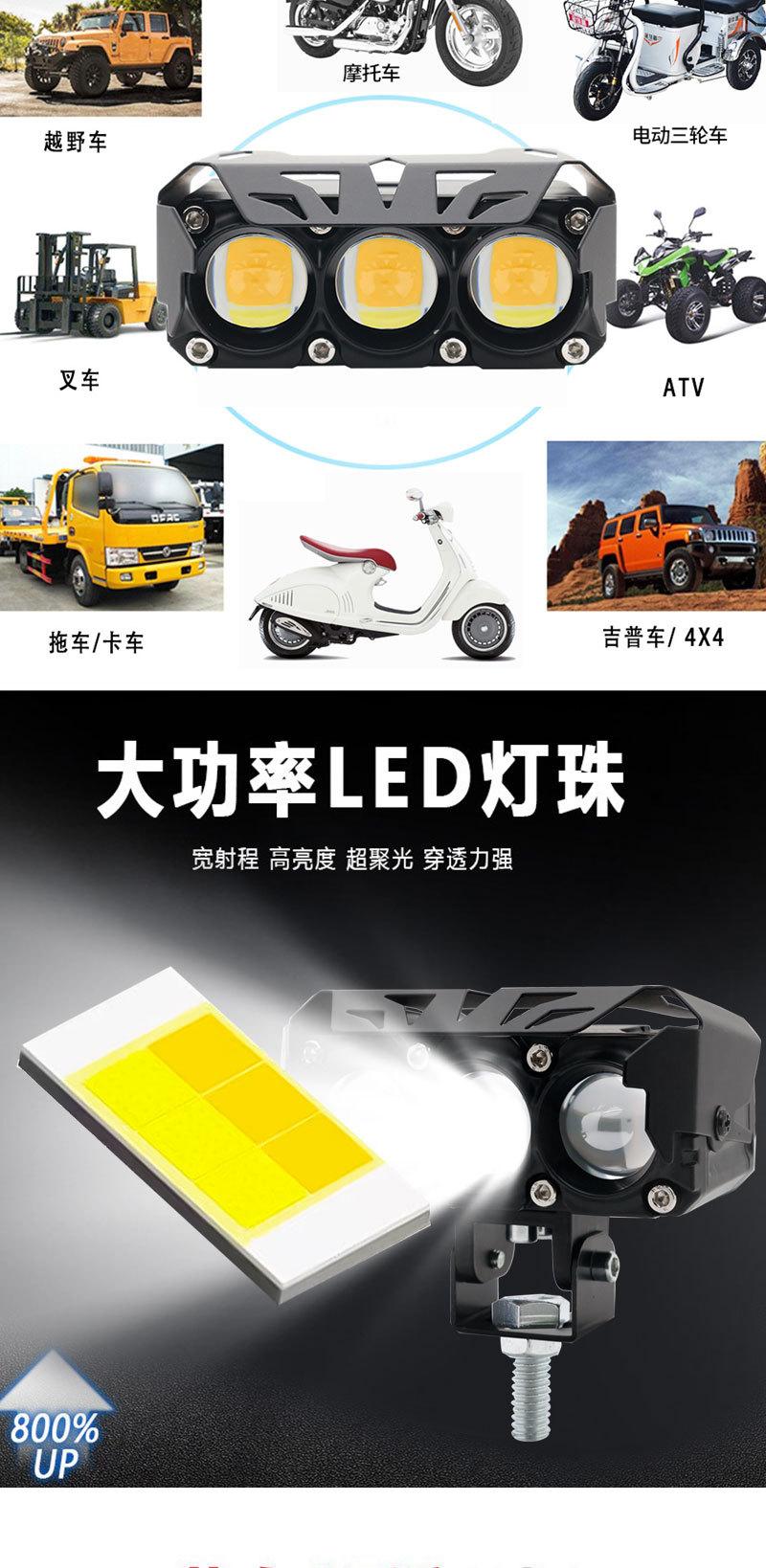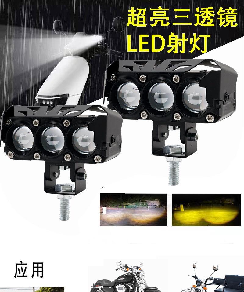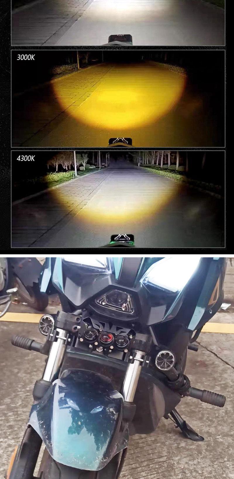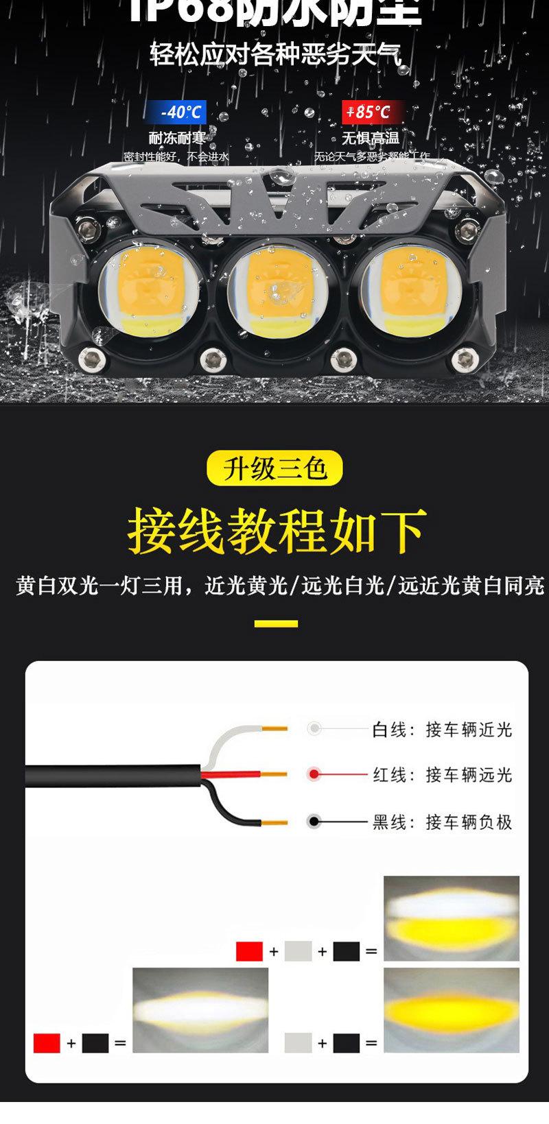 Foco de motocicleta, faro LED de dos colores, luz de tres ojos, luz de lejos y de cerca, luz de modificación de faro de motocicleta eléctrica impermeable