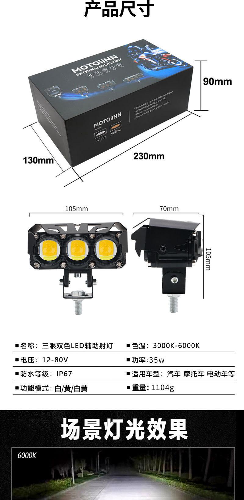 White and Yellow 35W Three-eye spotlight box (with bracket screw nut)