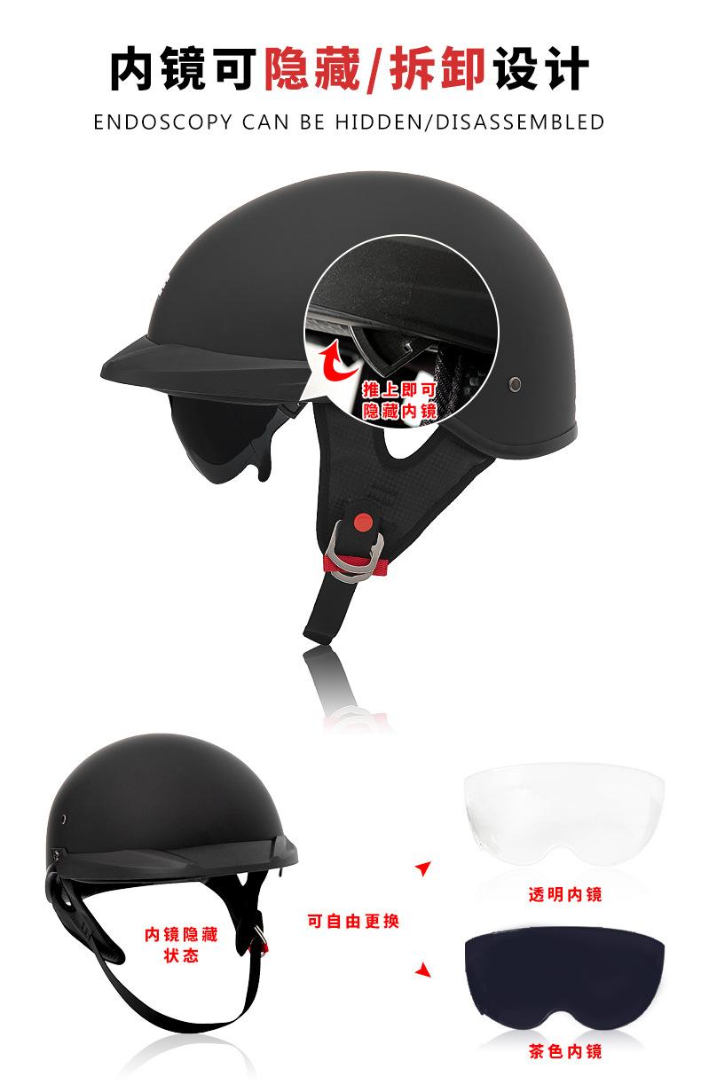 Casco de motocicleta con certificación 3C/DOT para hombre y mujer, ligero, de verano, estilo locomotora Prince con endoscopio