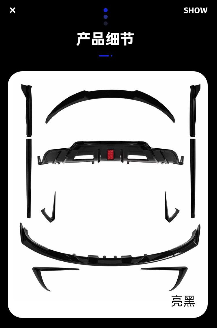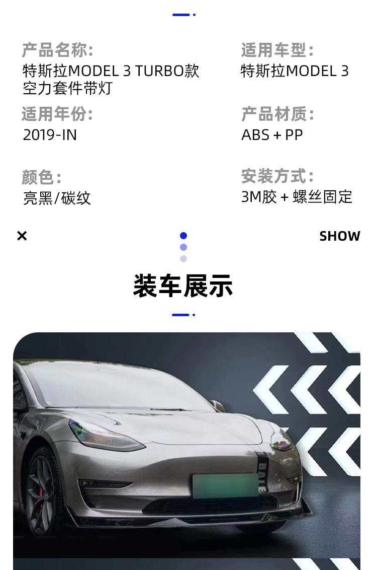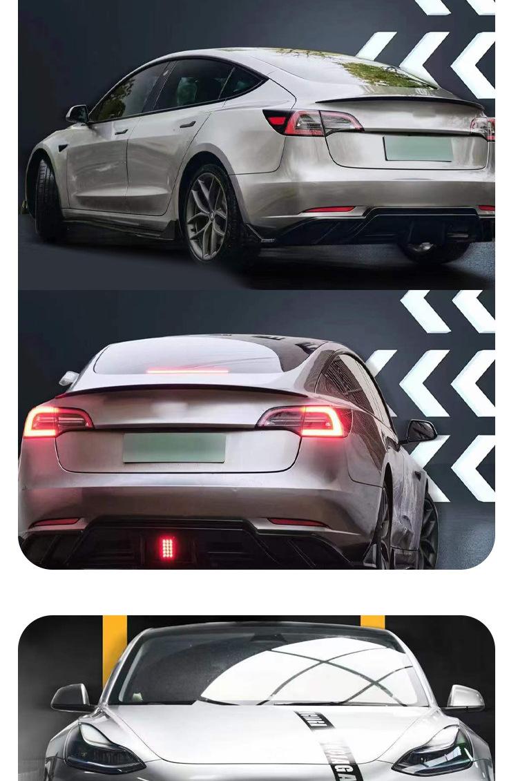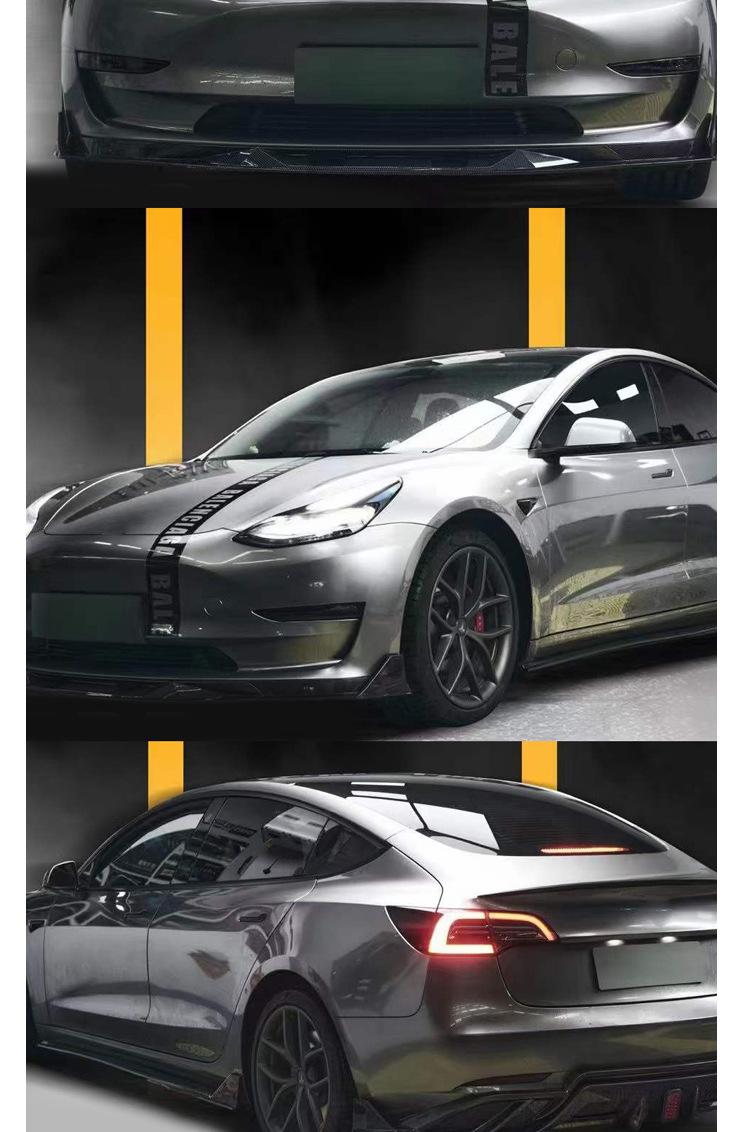 Adecuado para Tesla MODEL3 con labio trasero ligero Model3 modificado Pala delantera Turbo falda lateral cola cuchilla de viento delantera