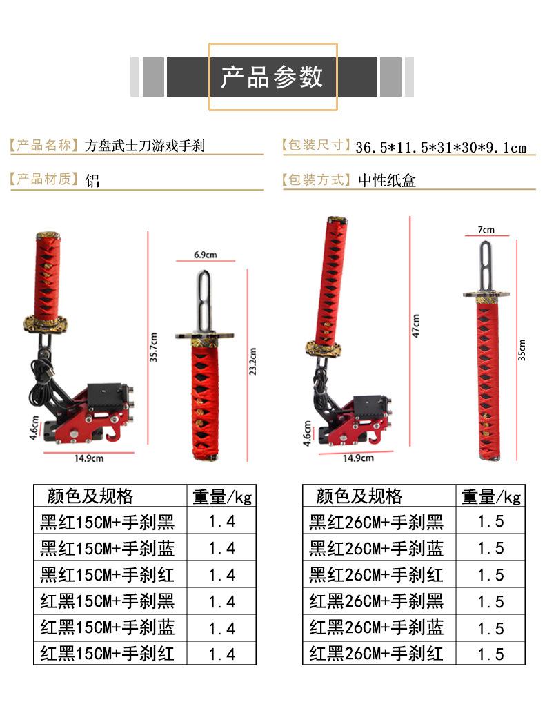 Lista de accesorios: 1*Empuñadura de espada samurái 1*Freno de mano USB 2*tornillos 2*tuercas 2*juntas