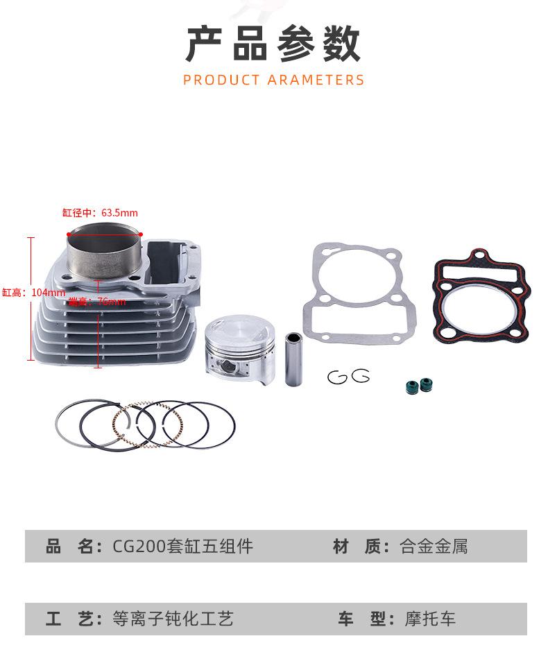 Accesorios para cabezal de motor de motocicleta, conjunto de cilindros de cinco componentes CG200, conjunto de cilindros, accesorios originales, venta directa de fábrica