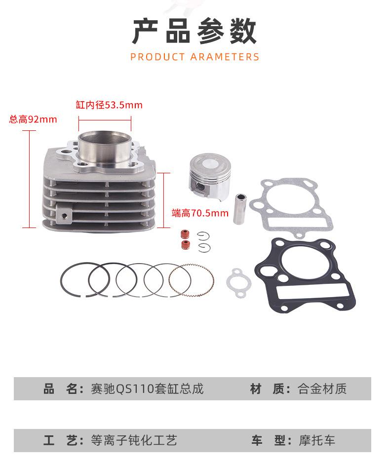 Accesorios para cabezal de motor de motocicleta de pedal, conjunto de cilindro de manga, carreras QS110, cilindro mediano, accesorios originales, venta directa de fábrica
