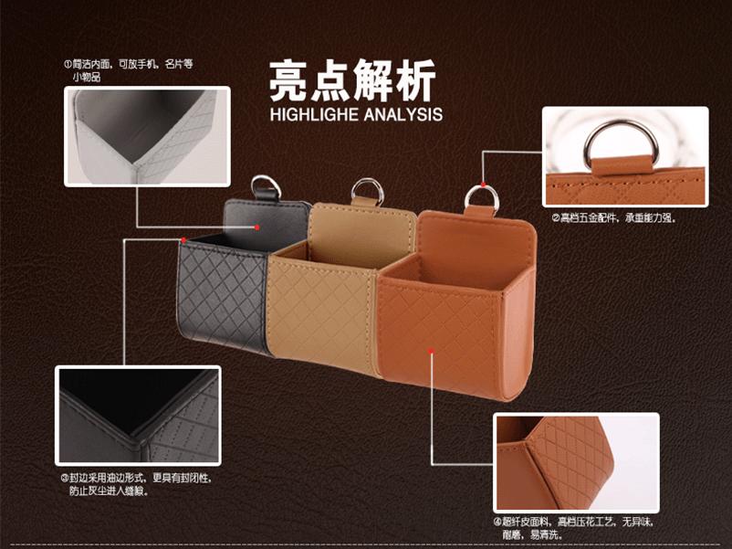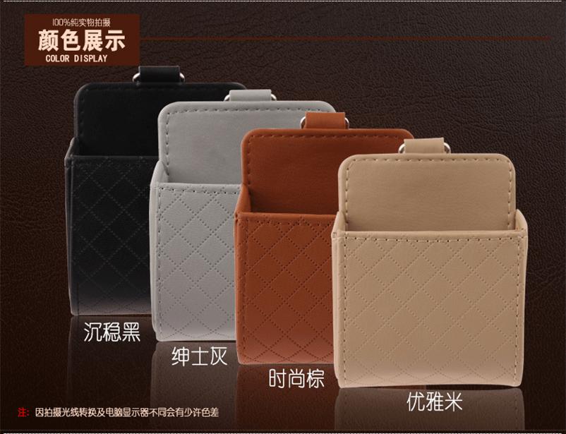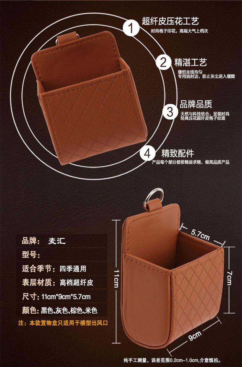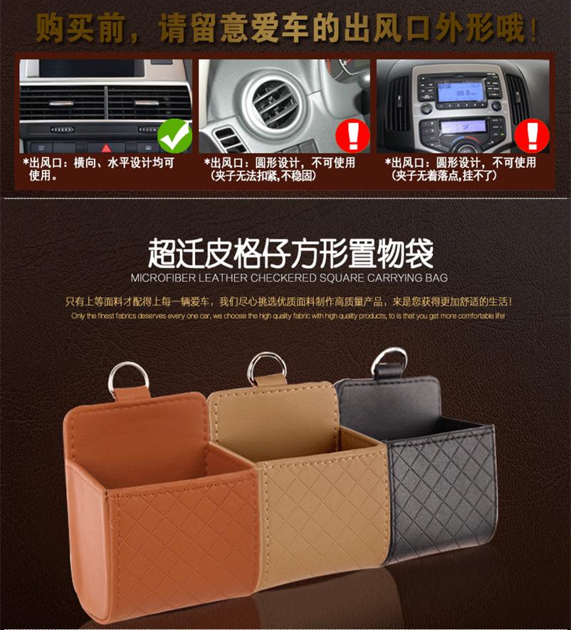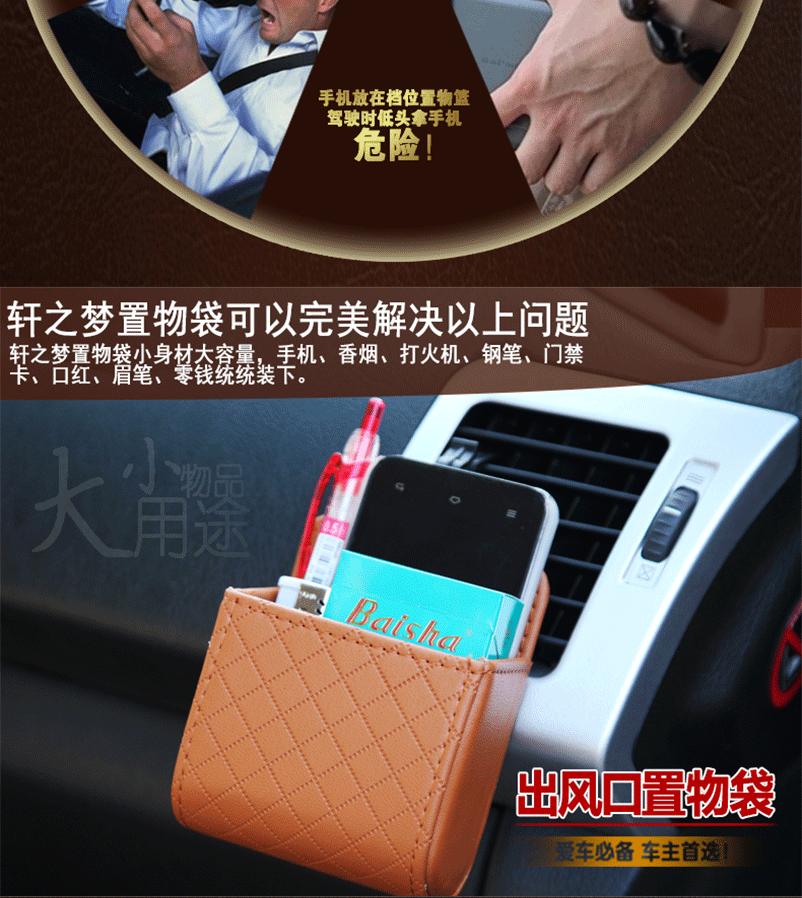 Bolsa de almacenamiento para salida de aire de coche, multifuncional, de cuero, para teléfono móvil, con taladro adhesivo, para guardar artículos diversos.