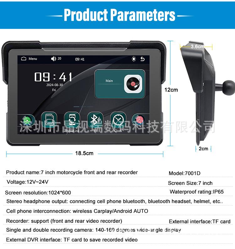 7inch motorcycle without recorder, 7inch motorcycle with front and rear recorder