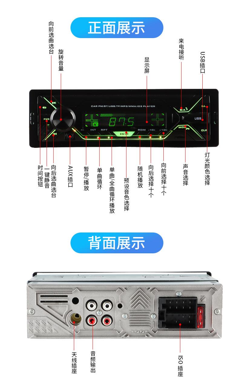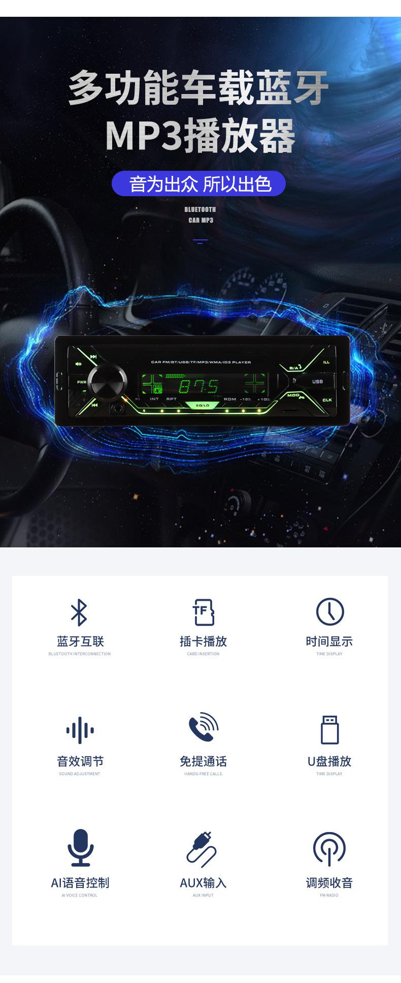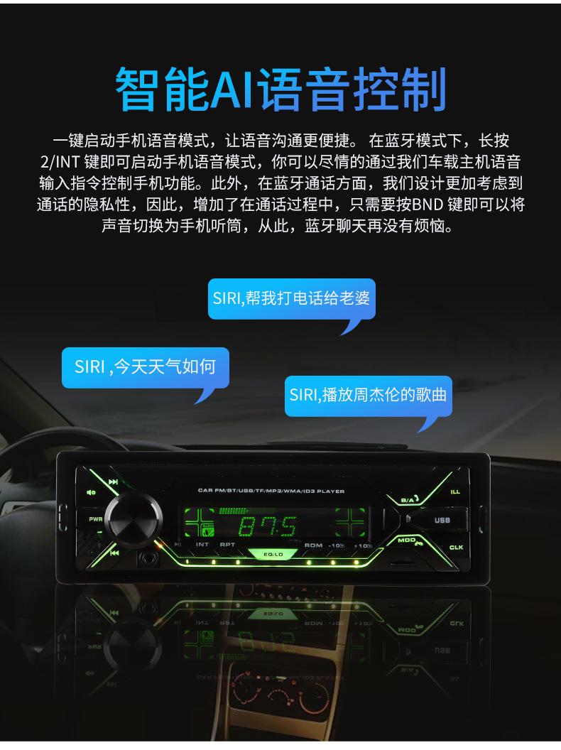 Reproductor MP3 para coche con Bluetooth, control de voz, tarjeta USB, manos libres, amplificador de potencia para llamadas, venta al por mayor
