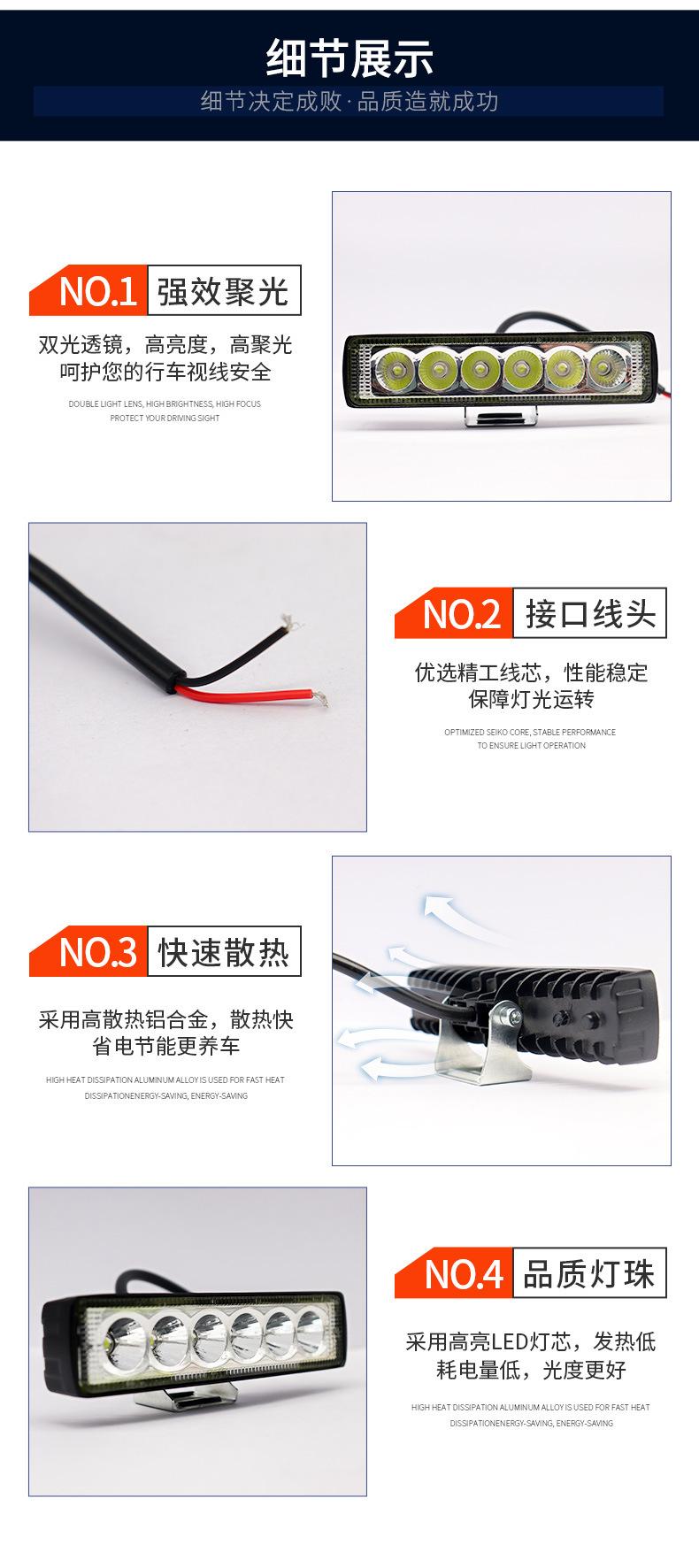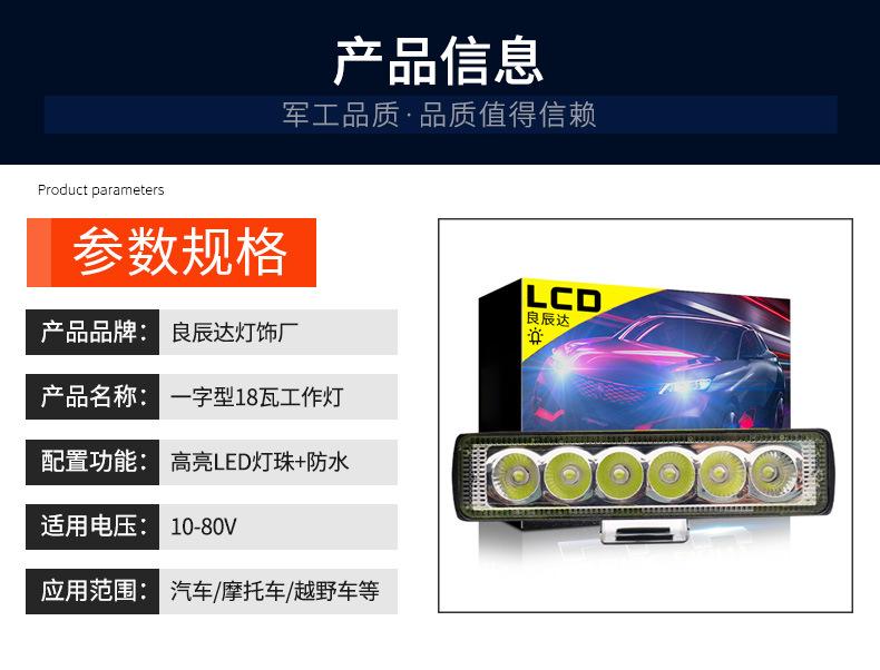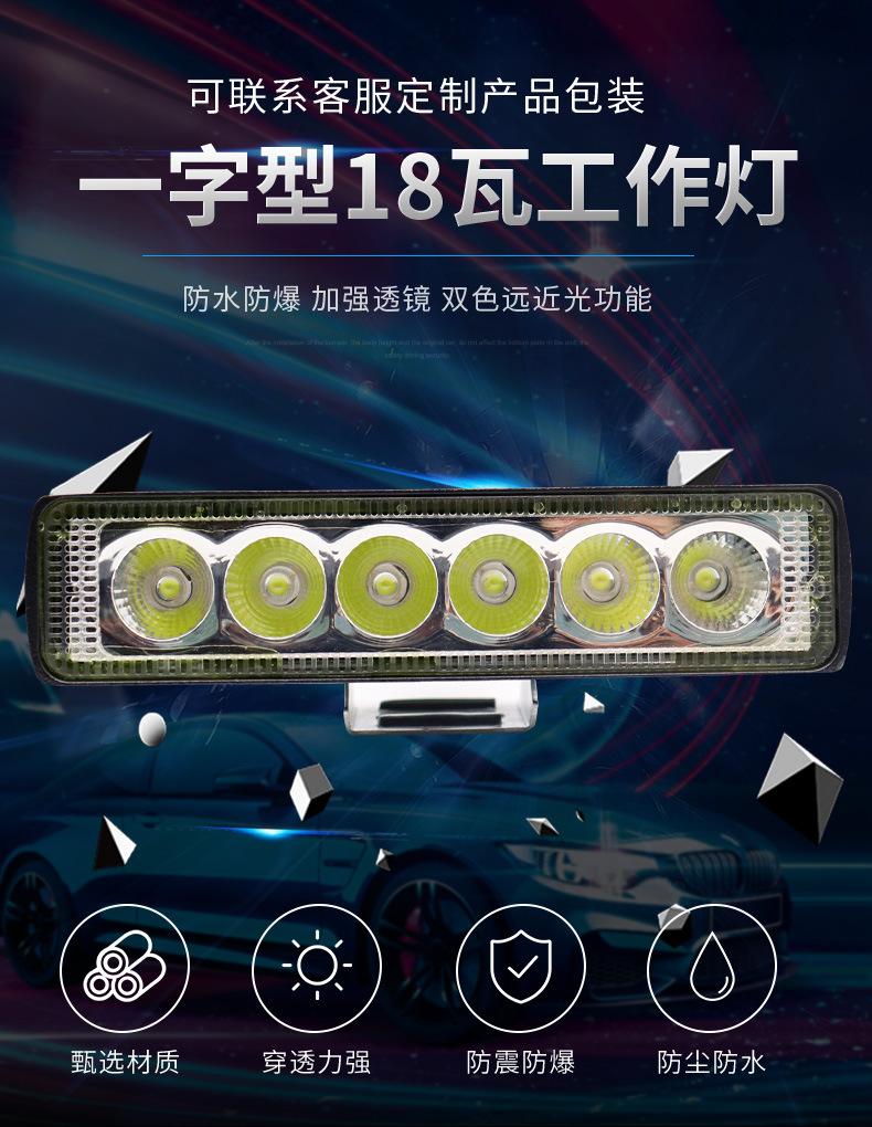 Luz de trabajo de 18 vatios, tipo recto, modificada, foco de inspección, luz de techo para vehículo todoterreno.