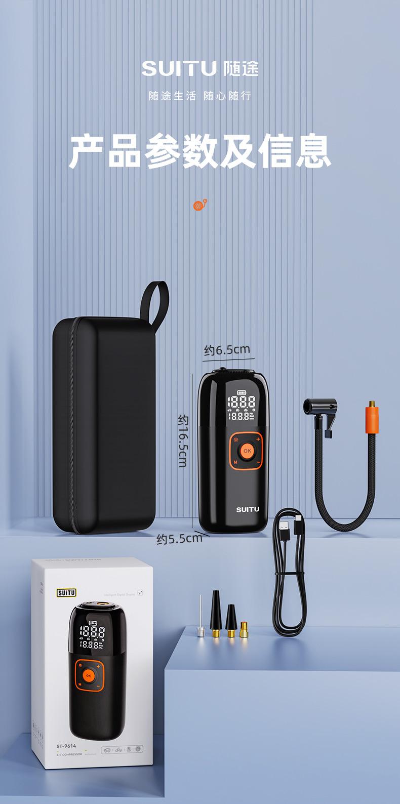 【ST-9614C-2】Bomba de aire inalámbrica con batería de litio-11.1V + bolsa de almacenamiento 19 cilindros Peso del juego completo: 745g