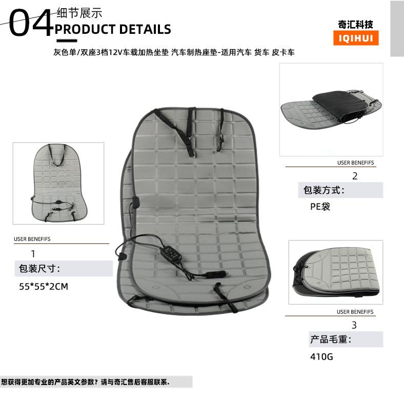 Gray single-seat car heating seat cushion, Gray two-seat car heating seat cushion