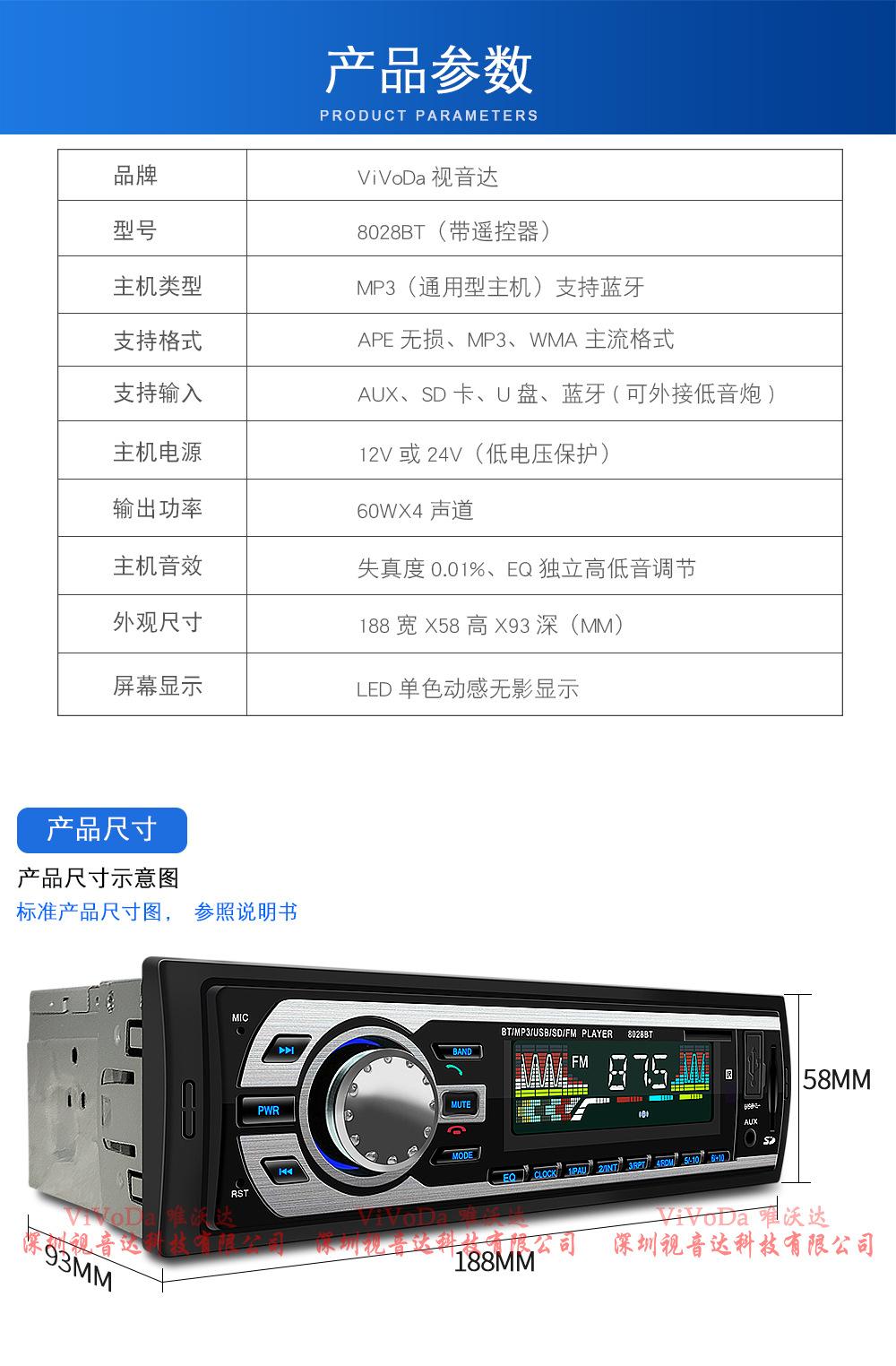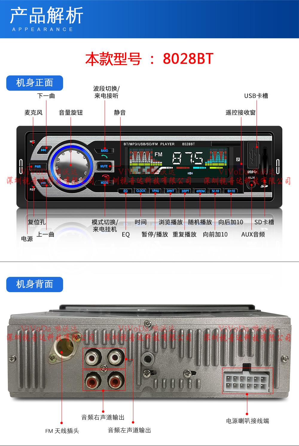 Reproductor de MP3 Bluetooth para Coche Neutral 12V24V Tarjeta Radio para Camión Generación Audio CD DVD Host 8028