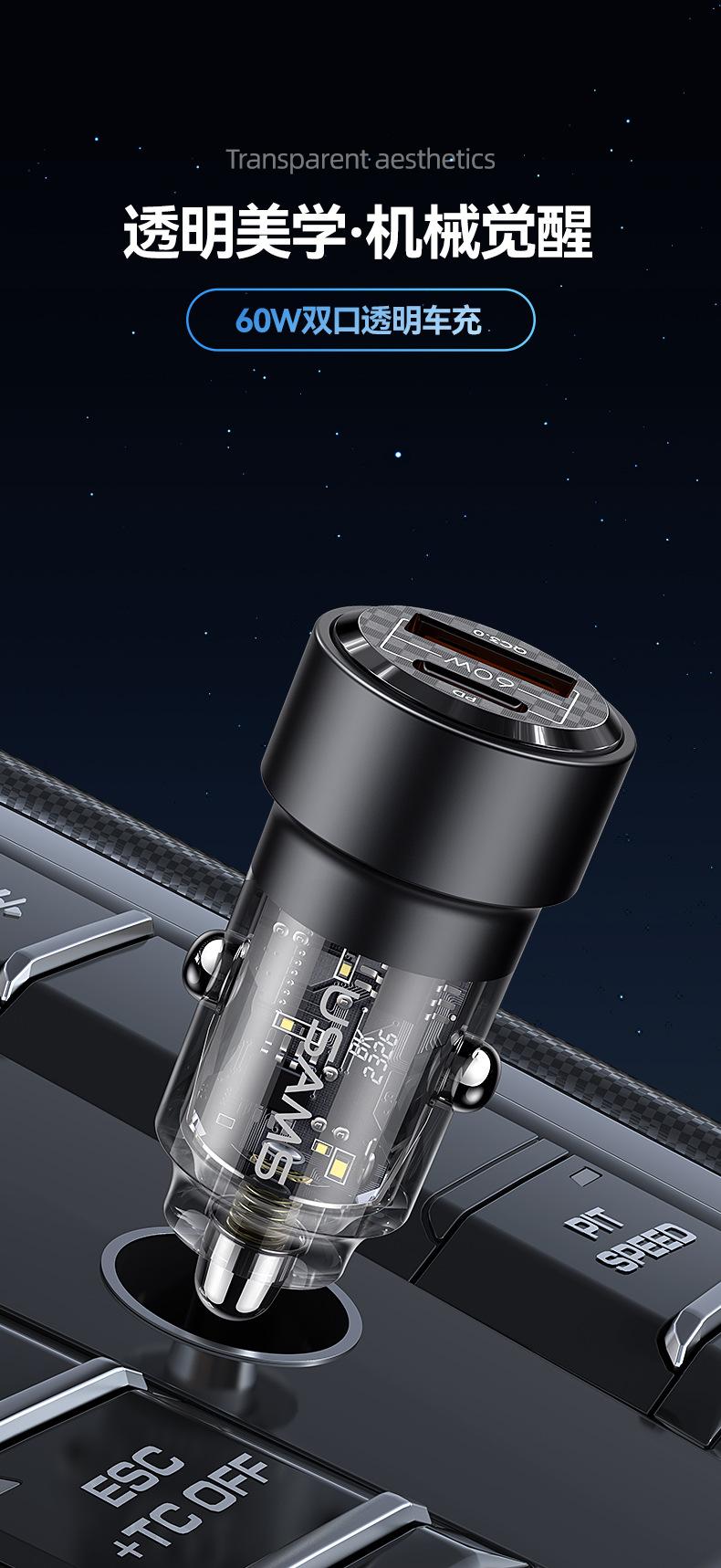 Cargador de coche Youshengshi de uno a dos puertos, cargador de coche de carga rápida de dos puertos, enchufe de conversión de teléfono móvil, cargador de coche USB para coche