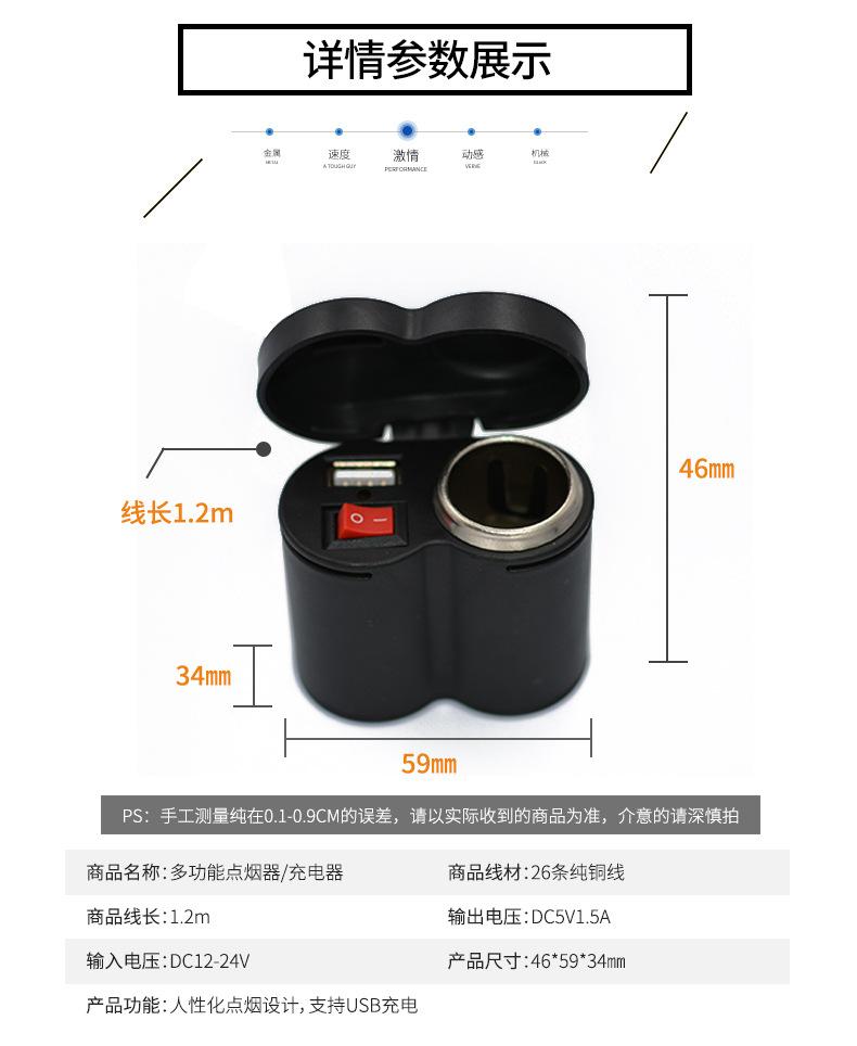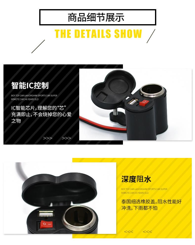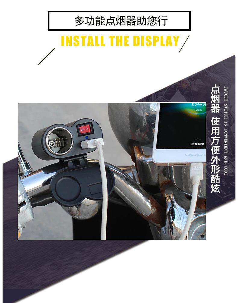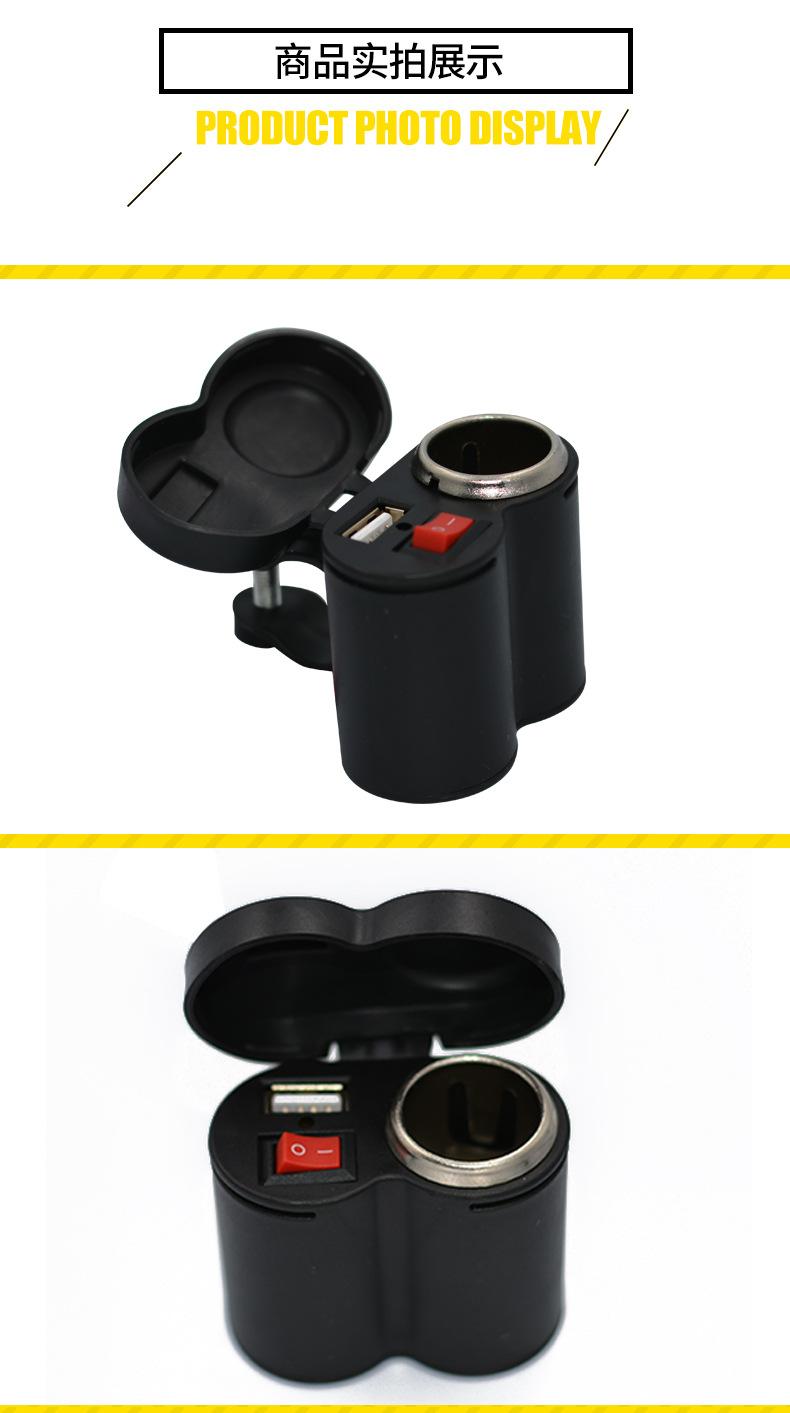 Encendedor de cigarrillos resistente al agua para motocicleta, toma de encendedor de cigarrillos para coche eléctrico, cargador universal USB para teléfono móvil 2 en uno al por mayor