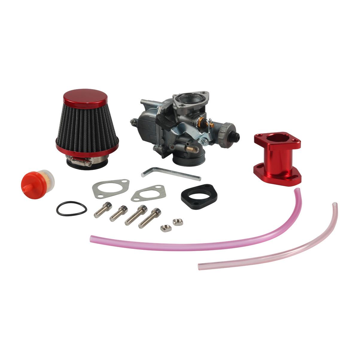 [Función del Producto]: Mejora del Rendimiento: El carburador VM22 está diseñado para mejorar el rendimiento general de un motor de motocicleta o kart, incluyendo la potencia de salida y la velocidad de respuesta, mediante la optimización de la relación aire-combustible, el colector de admisión y otros diseños.