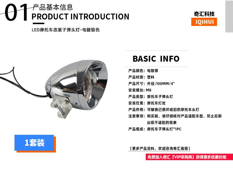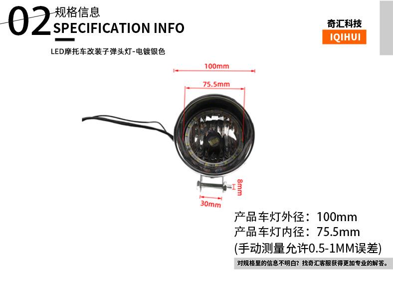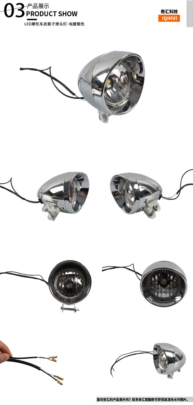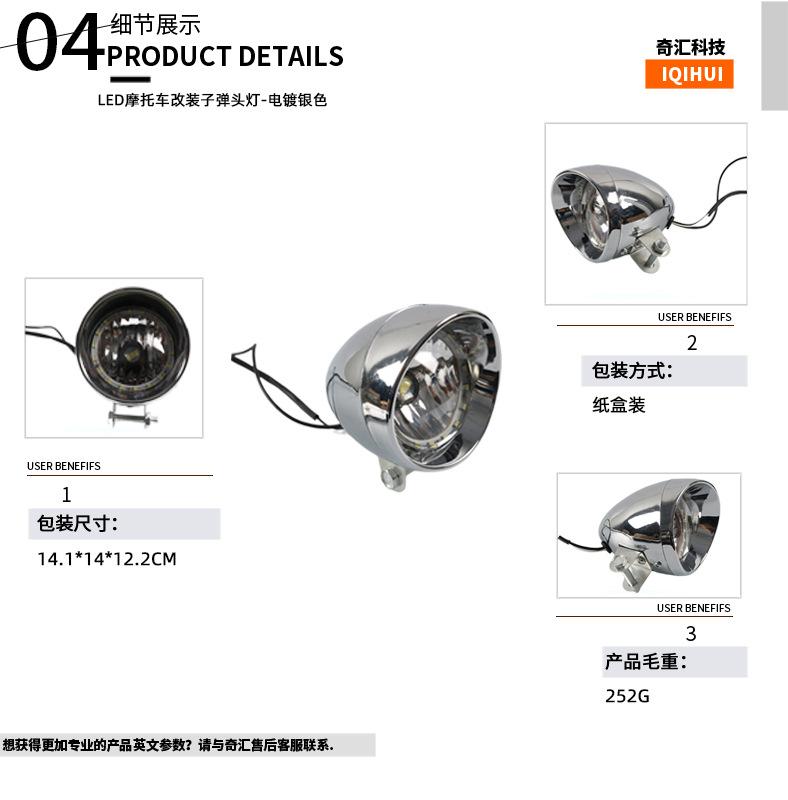 Accesorios de modificación de motocicleta de venta caliente transfronteriza, tamaño pequeño, faro LED modificado, lámpara de bala, galvanoplastia plateada