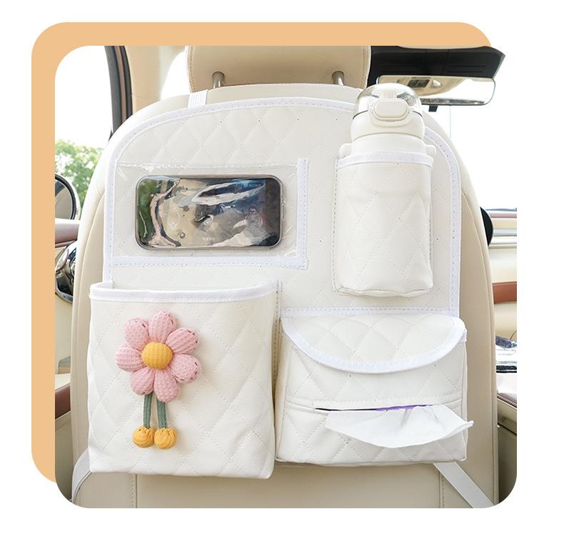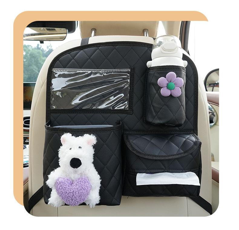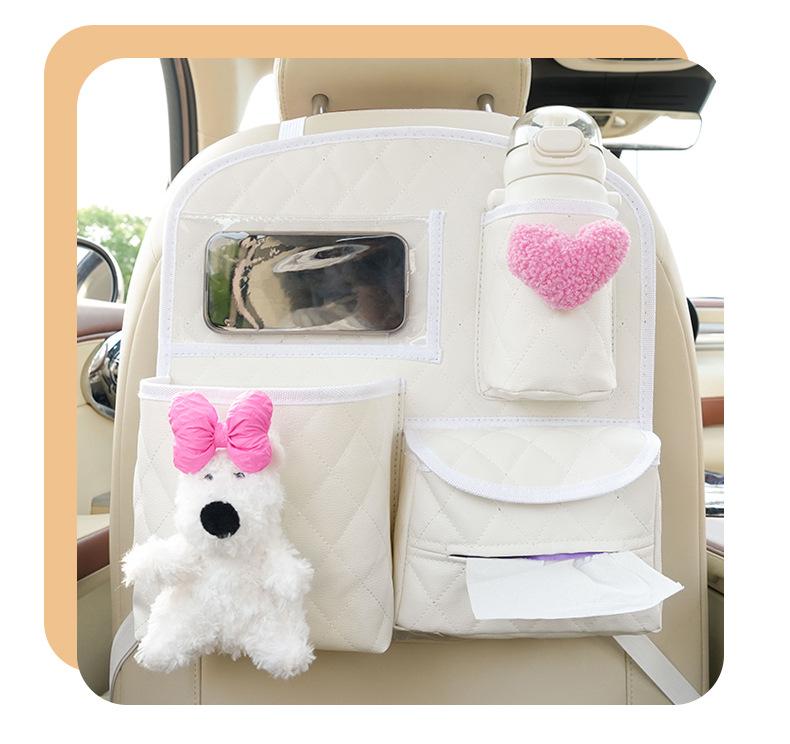 Bolsa de Almacenamiento para Respaldo de Asiento de Coche de Dibujos Animados DIY Cuero Coche Bolsa de Almacenamiento Trasera para Coche Bolsa Colgante de Almacenamiento Multifuncional para Coche