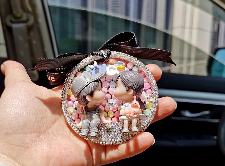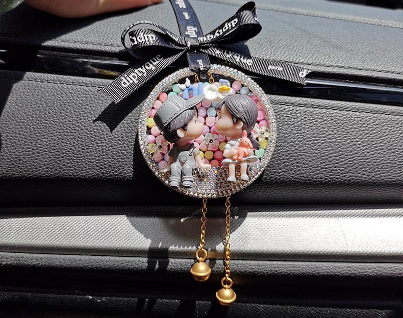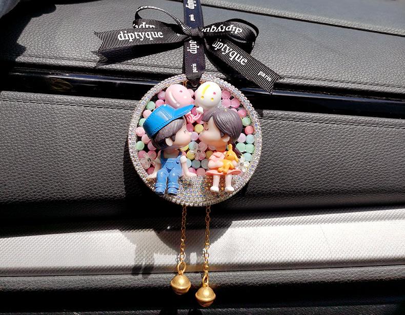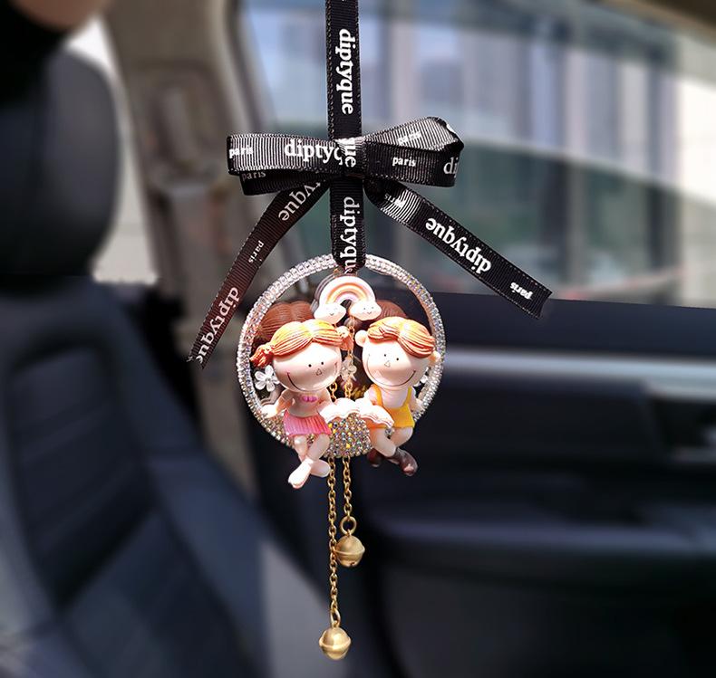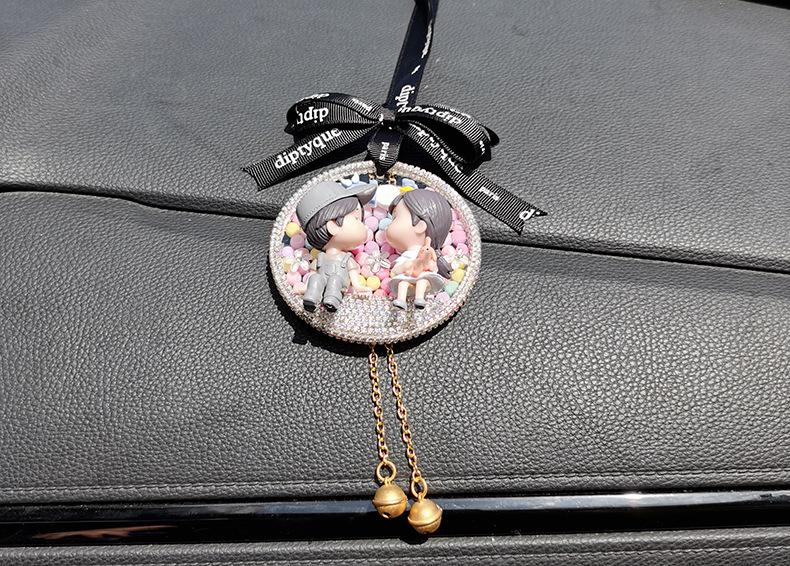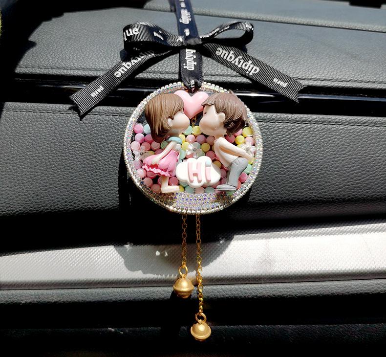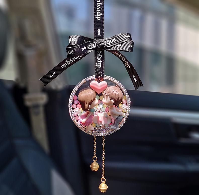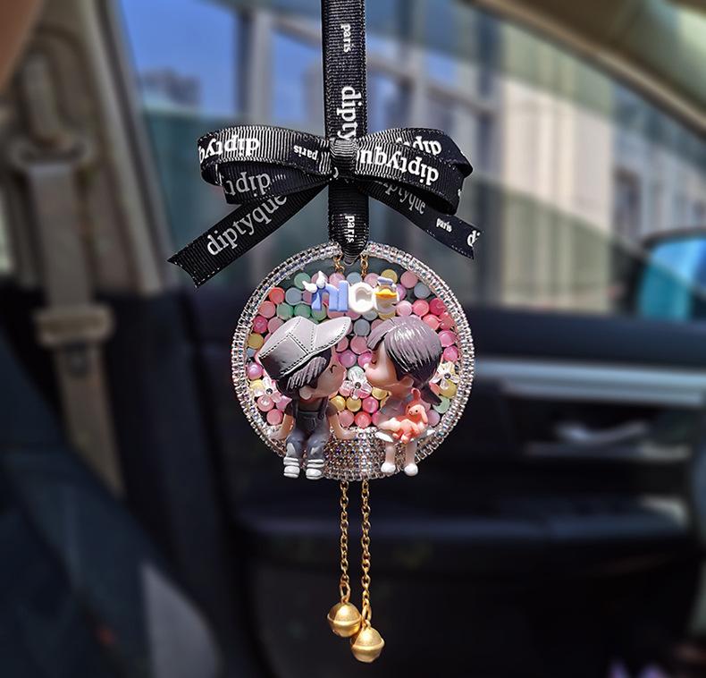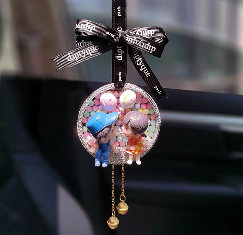 Lindo colgante de coche para pareja, colgante de coche, colgante para espejo retrovisor, decoración de coche de celebridades de Internet, creativo con incrustaciones de diamantes