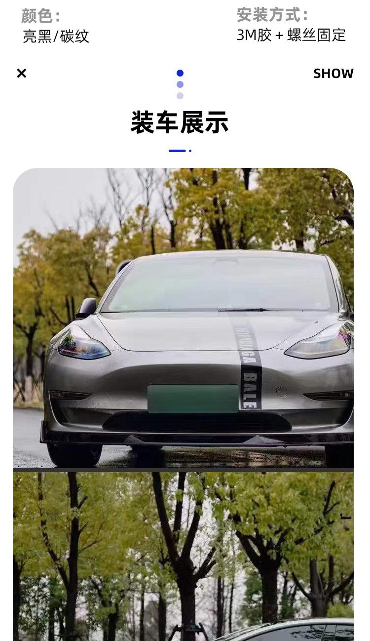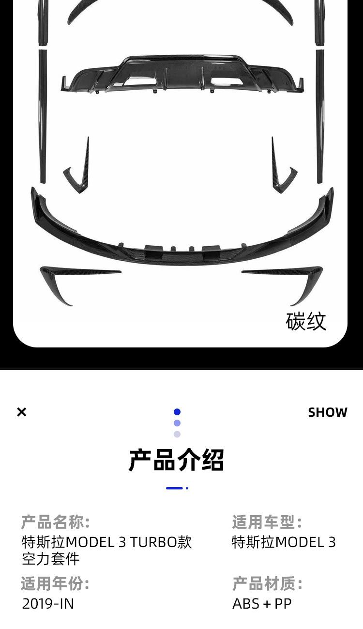 Adecuado para labio delantero Tesla MODEL3 Modelo3 modificado Pala delantera Turbo faldón lateral labio trasero cola cuchillo de viento delantero