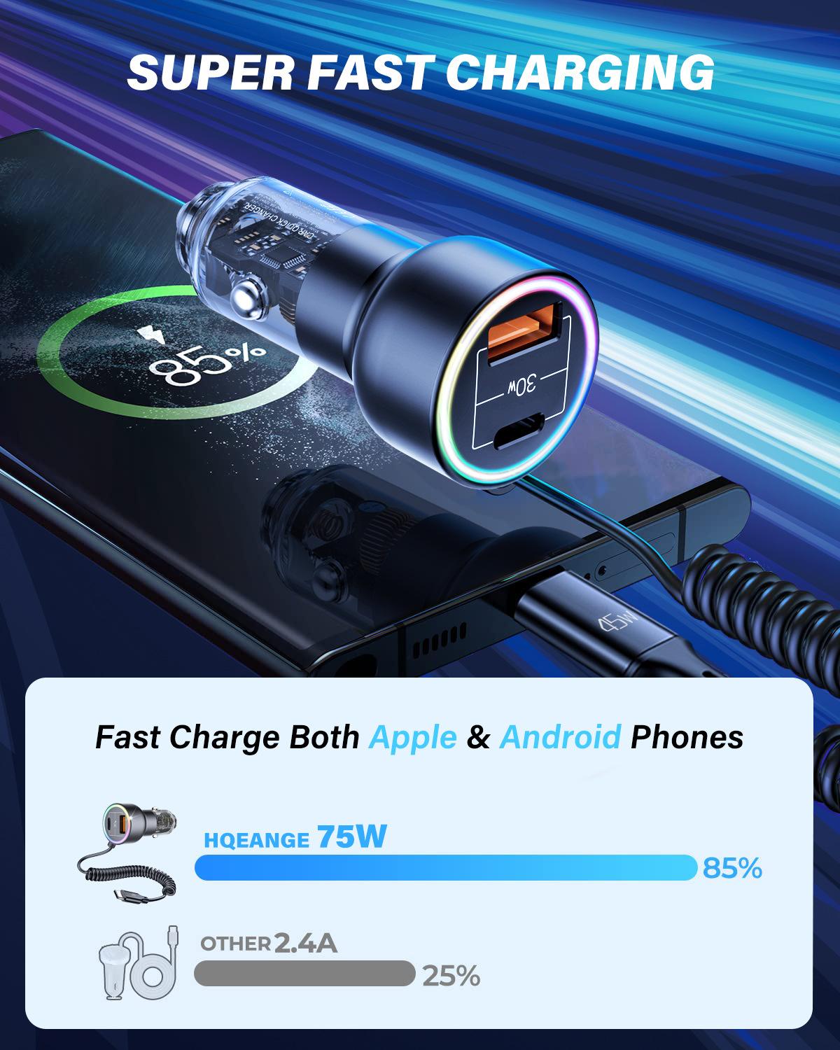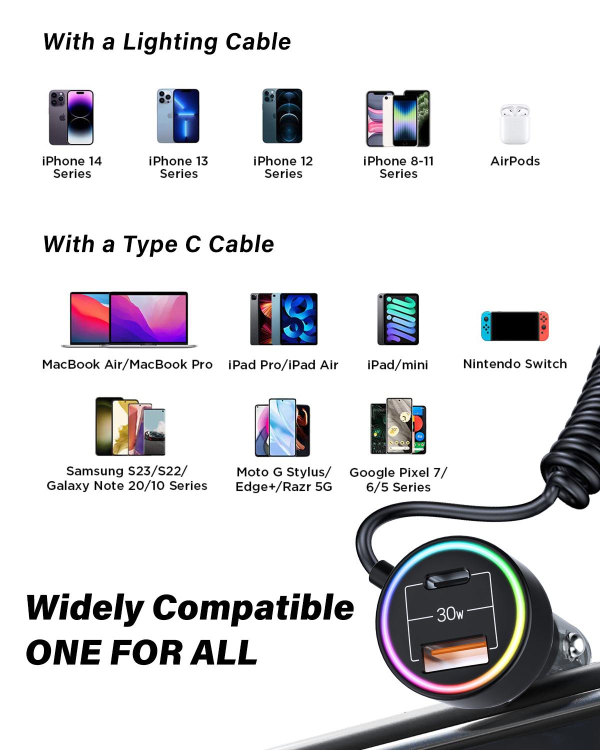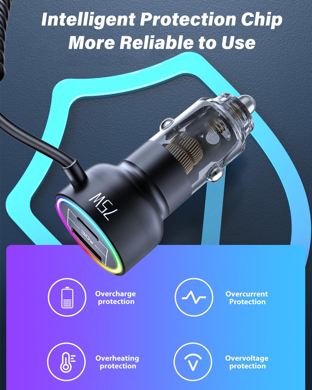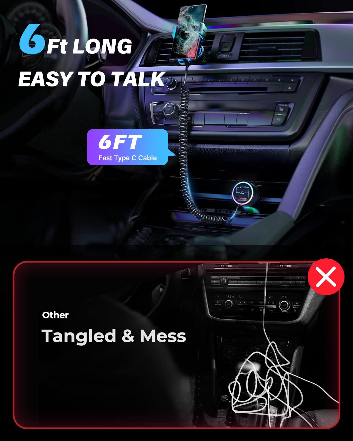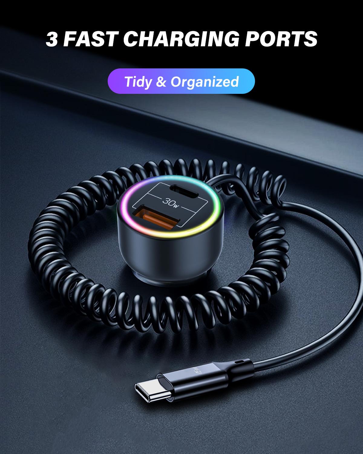 ♥Nombre del producto: Cargador de coche con cable Tipo-C de resorte autocontenido transparente de hardware