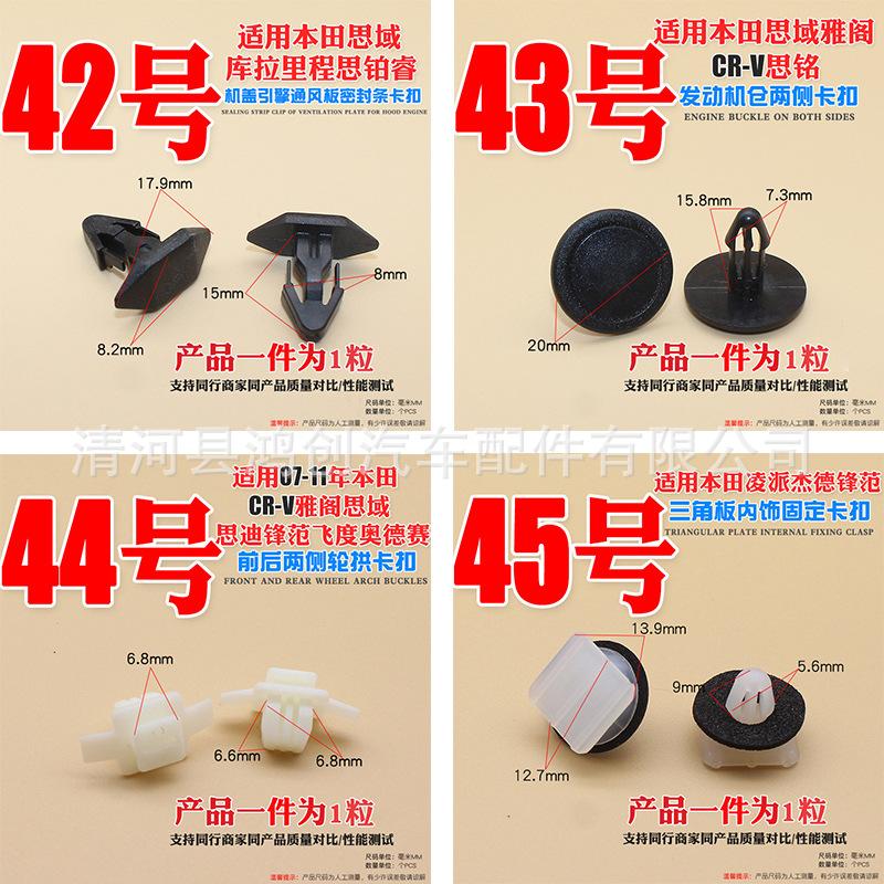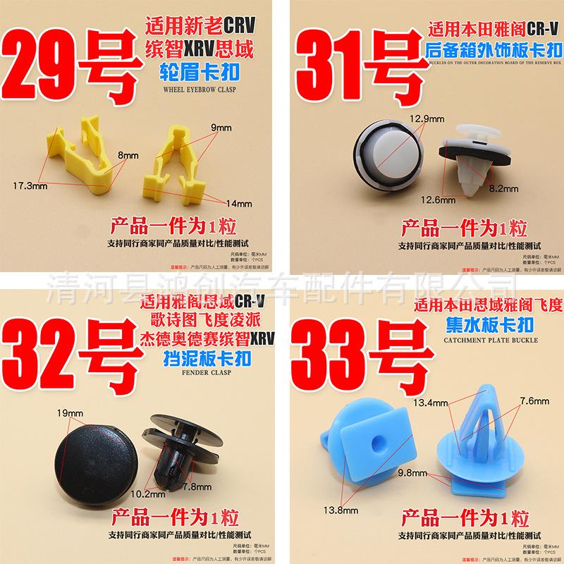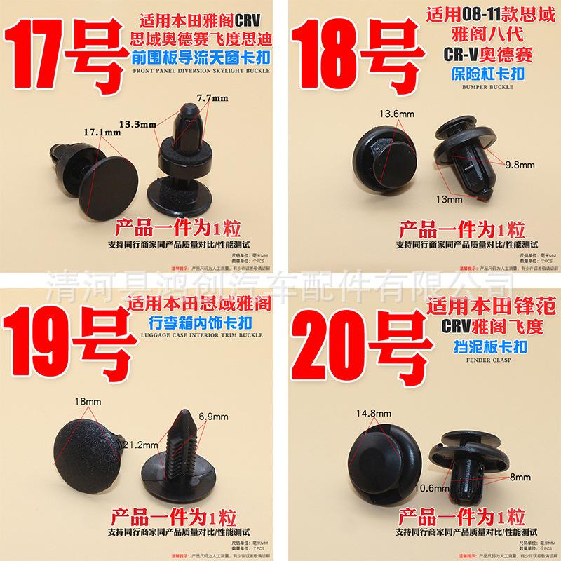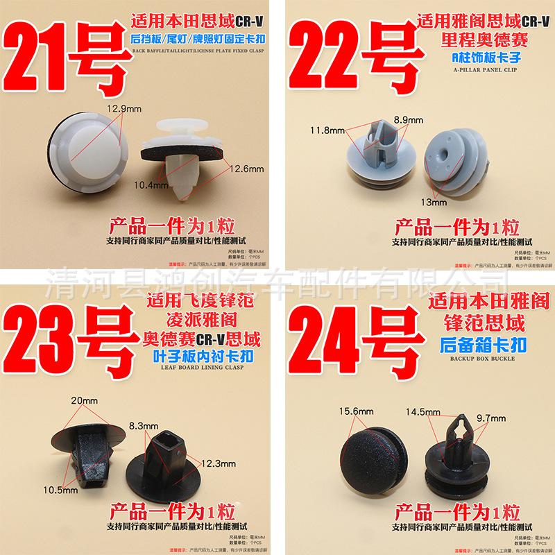 Hebillas de posición de automóvil; hebillas de techo de automóvil y remaches de cuero; hebillas de paneles interiores; hebillas de paneles de puertas; hebillas de paneles de protección; hebillas de vigas laterales inferiores; clips de fijación de hebillas de asientos; tornillos Tribute de asientos de alambre rápido con hebilla ligera; hebillas de cerradura de automóvil; hebillas de tira de drenaje; hebillas de maletero; hebillas de revestimiento de guardabarros; hebillas de tablero de aislamiento de capó; clips de algodón de aislamiento; hebillas de tira de sellado; hebillas de puerta de rueda; clips de varilla de soporte Hebilla; hebilla de soporte de vidrio; hebilla de vidrio; hebilla de tapete de piso; hebilla a presión; hebilla de doble botón; hebilla de talón; hebilla de parachoques (parachoques delantero y parachoques trasero); hebilla de rejilla central; hebilla de capó; clavo de núcleo; Clavos perforados; hebillas de cortina; hebillas de piso; hebillas de alfombra; abrazaderas de tubería de agua; abrazaderas de tubería de aceite; abrazaderas de línea; Abrazaderas de estilo alemán; abrazaderas de manguera gourmet; abrazaderas de tubería de agua potentes; hebillas de boquilla de agua; clavos de listón; elevadores de puerta; seguro de puerta; Pasadores de cola dividida; hebillas de expansión; tornillos de expansión; tensores; tensores de expansión; clavos de núcleo; muelles de goma; bujes; tornillos de placa de hoja de metal; láminas de hierro; tornillos; tuercas; grapas de hierro