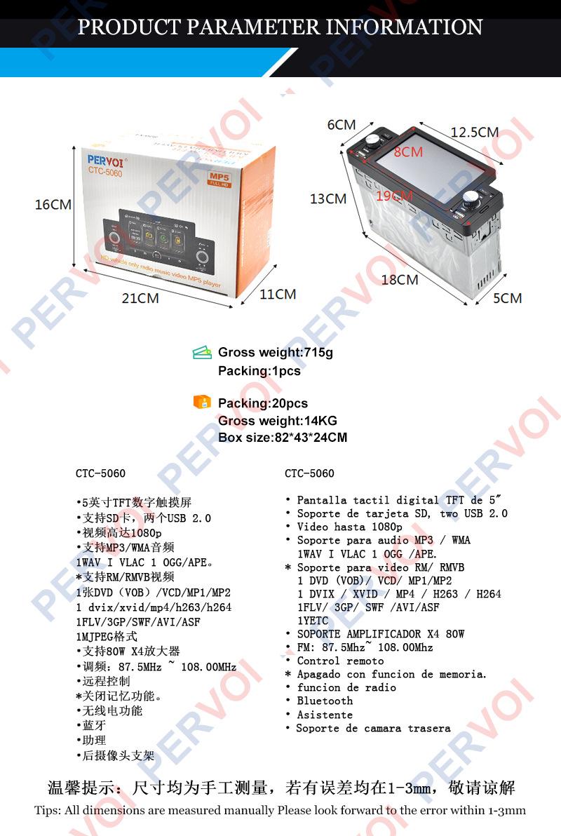 Nuevo reproductor MP5 de navegación para coche de 5 pulgadas con pantalla táctil resistente y Bluetooth para marcha atrás multimedia PEWO
