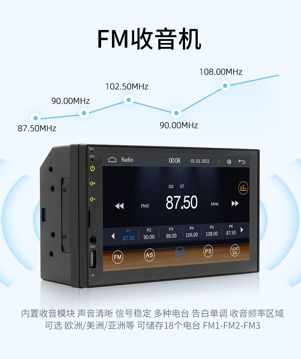 Frecuencia de radio: FM 87.5~108.0MHz (frecuencias seleccionables para China, América 1, América 2, Japón, Rusia y Medio Oriente, frecuencia predeterminada para Europa)