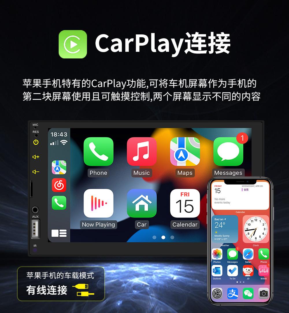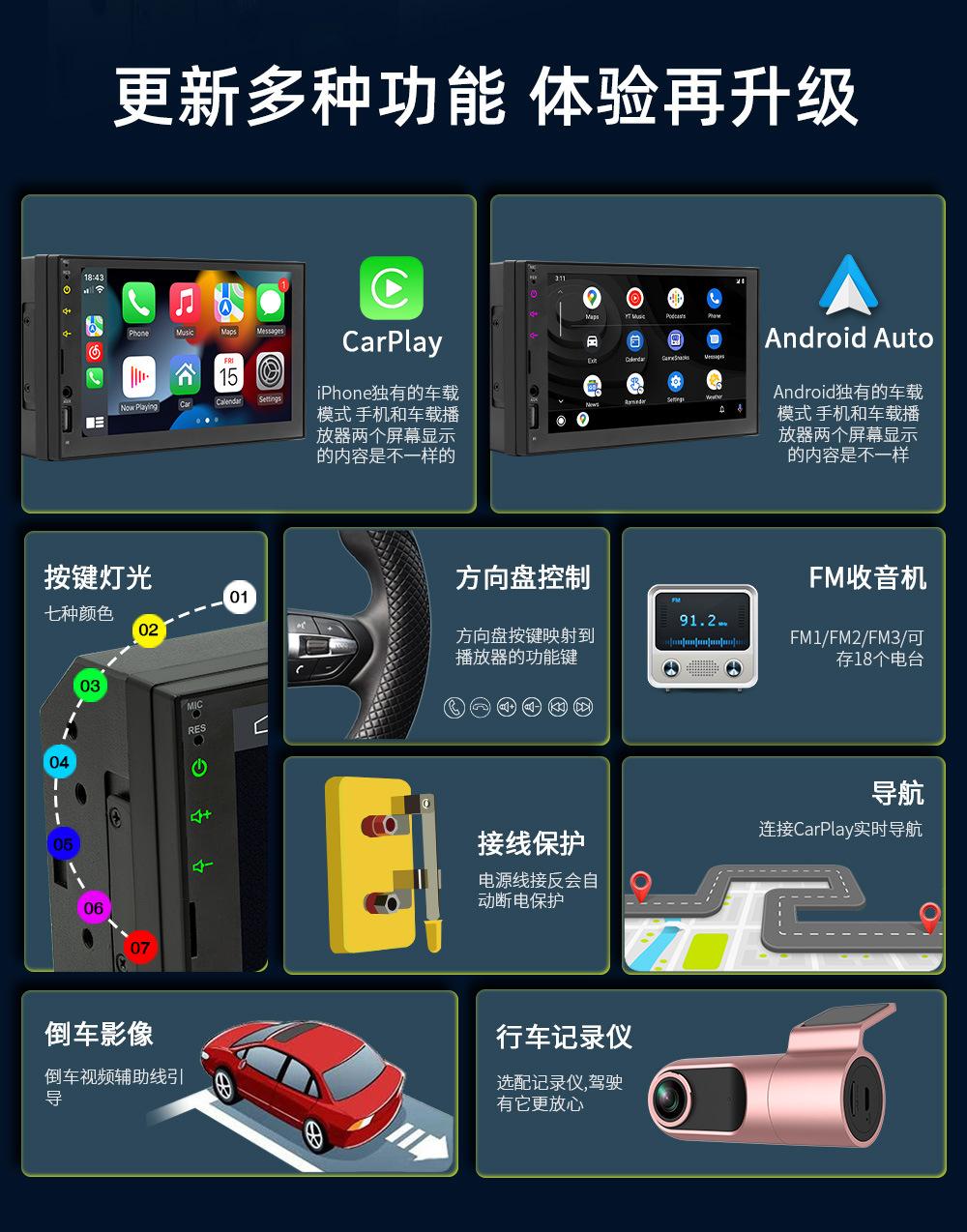 ♦Apple Carplay y Android Auto, la pantalla del coche se puede usar como la segunda pantalla del teléfono móvil y se puede controlar mediante tacto, y las dos pantallas muestran contenido diferente