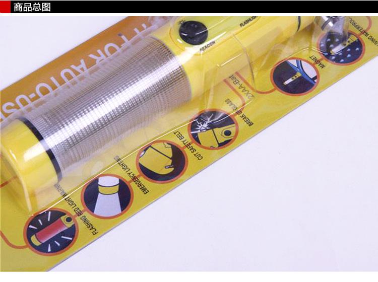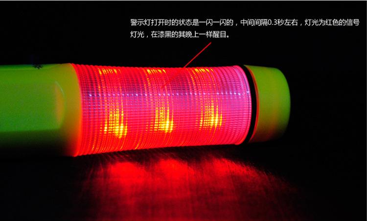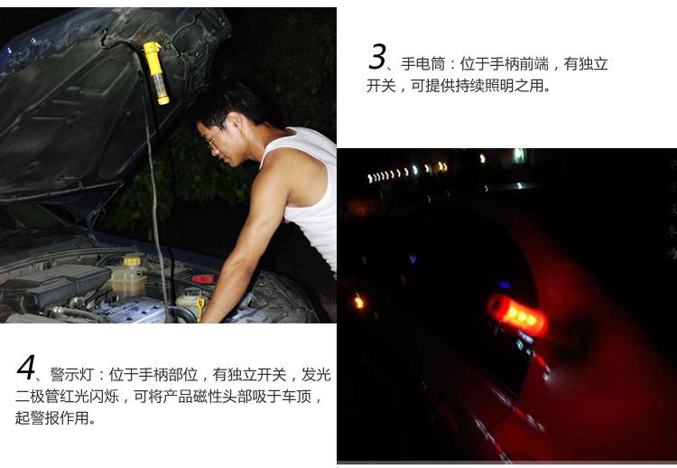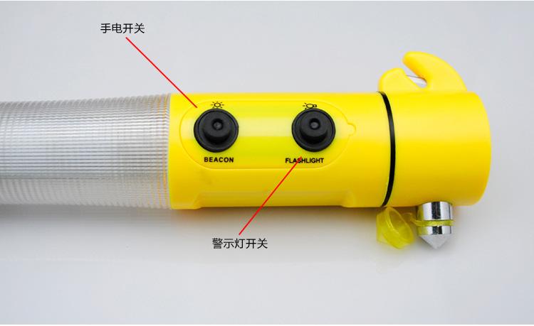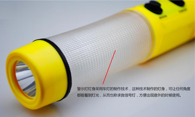 4. Luz de advertencia: Ubicado en el mango, hay un interruptor independiente con 9 LED que parpadean en rojo. El cabezal magnético del producto puede ser atraído al techo del vehículo para actuar como alarma.