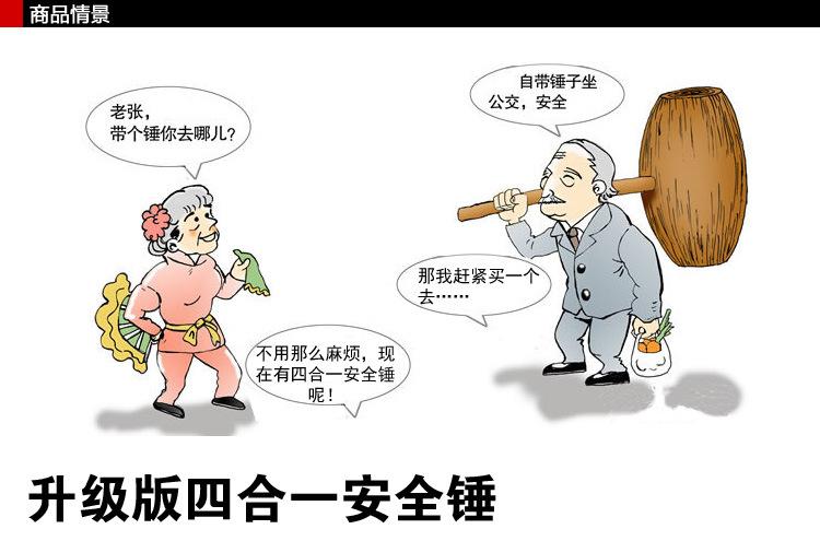 Uso correcto del martillo de seguridad: Al ocurrir una colisión trasera en un tren de alta velocidad, cuando los pasajeros se preparaban para escapar, descubrieron que usar un martillo rompecristales para romper el cristal era ineficaz. Incluso rompiéndolo con todas sus fuerzas, el cristal no se movió. Finalmente, escaparon por la parte rota del vagón. De hecho, el martillo de seguridad no puede romper el cristal por la mitad, sino que debe golpearse en las cuatro esquinas.