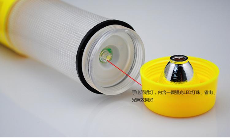 Presione el interruptor de la linterna y la bombilla fluorescente en la parte superior se encenderá para iluminar.