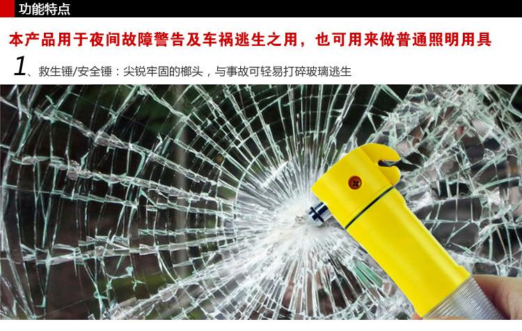 Martillo de seguridad para automóvil 4 en 1, martillo salvavidas, martillo de escape, linterna, luz de emergencia, martillo de seguridad multifunción
