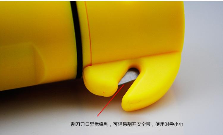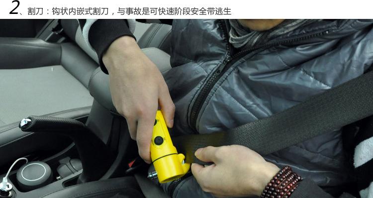 2. Cuchillo de corte: Hoja incrustada en forma de gancho, corta el cinturón de seguridad para escapar en caso de accidente.