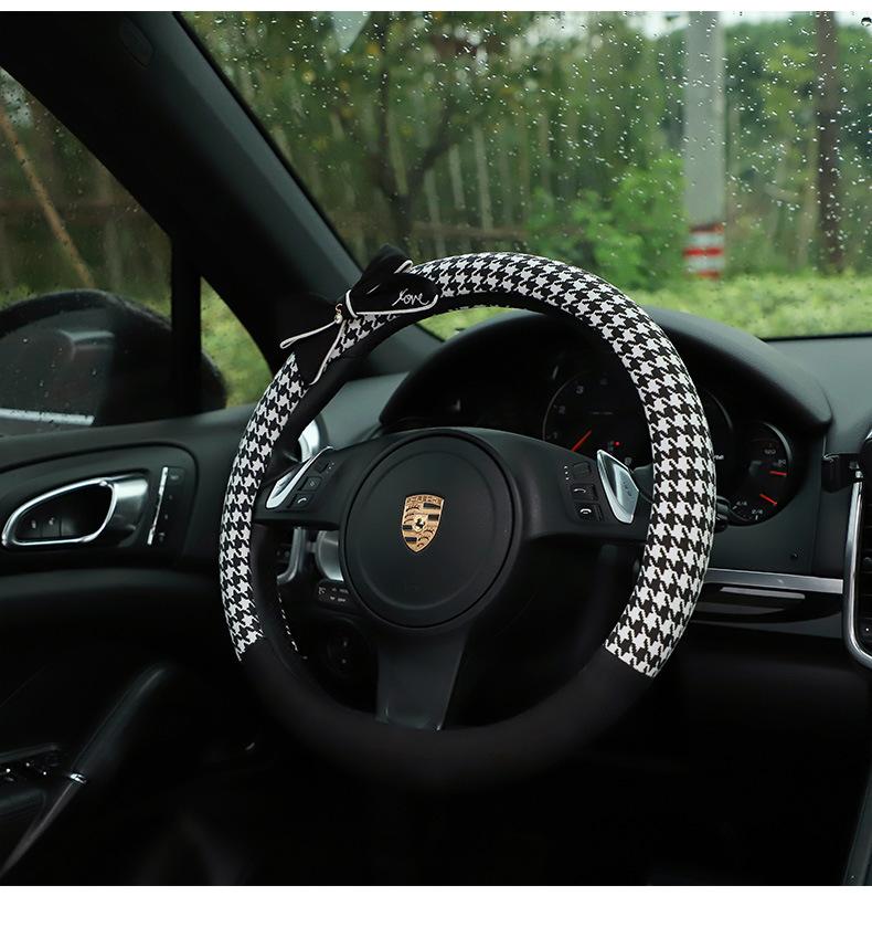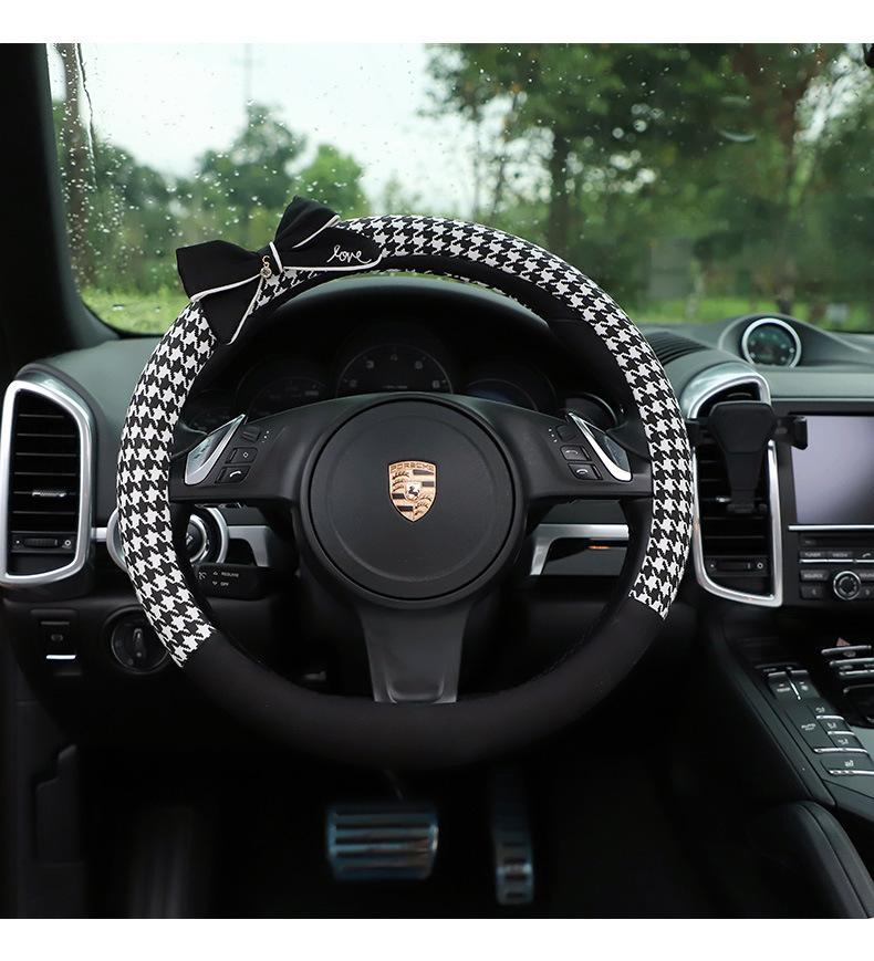 Houndstooth bowknot steering wheel, Houndstooth Stitching Steering Wheel, Houndstooth Bow Shoulder Single, Hou...