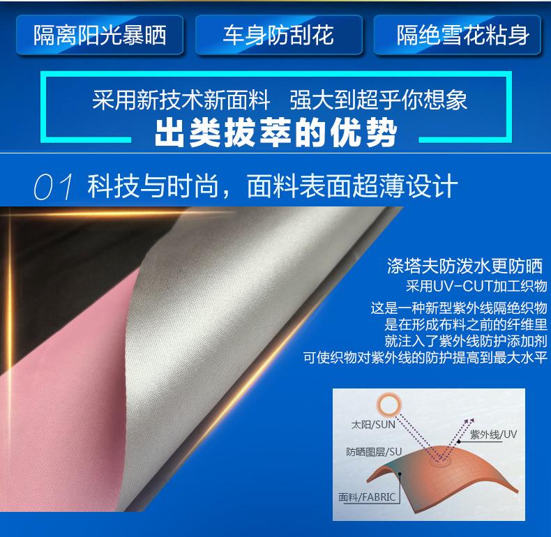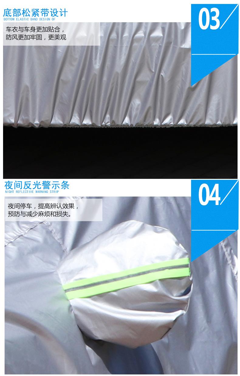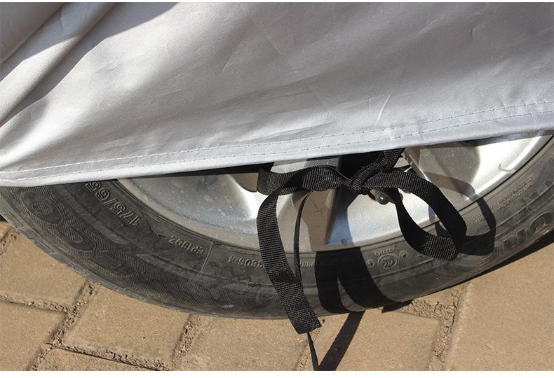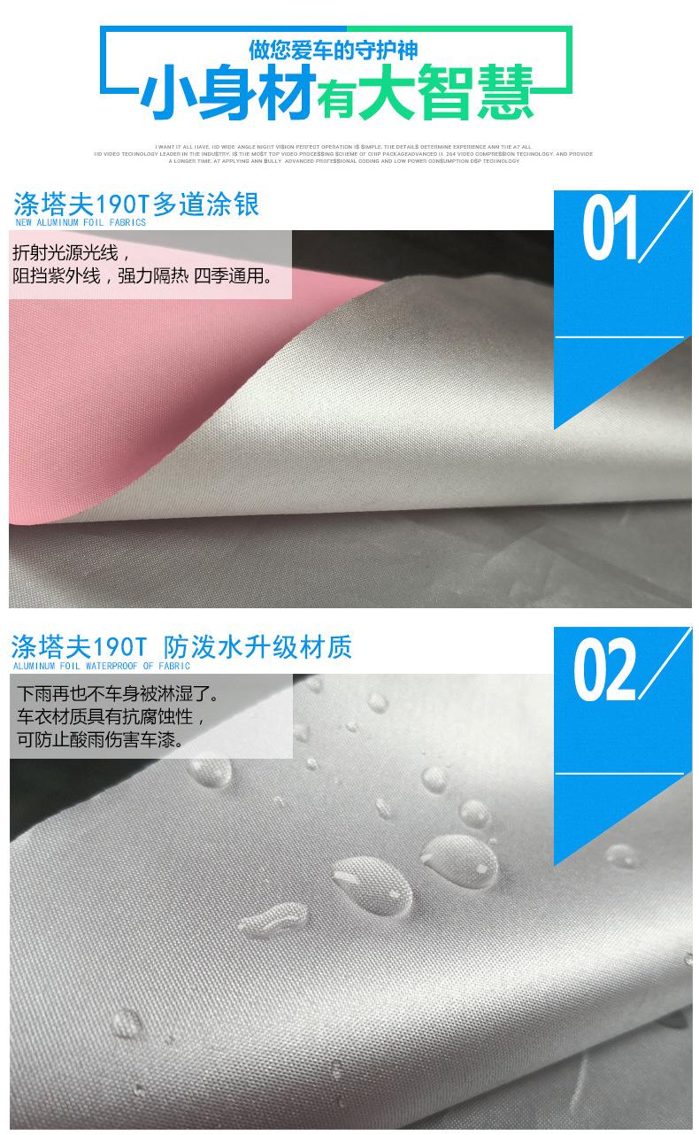 Usamos tela para ropa de coche 190T recubierta de plata. ¡El producto es impermeable, resistente al desgarro, a prueba de polvo, a prueba de arena y ligero!
