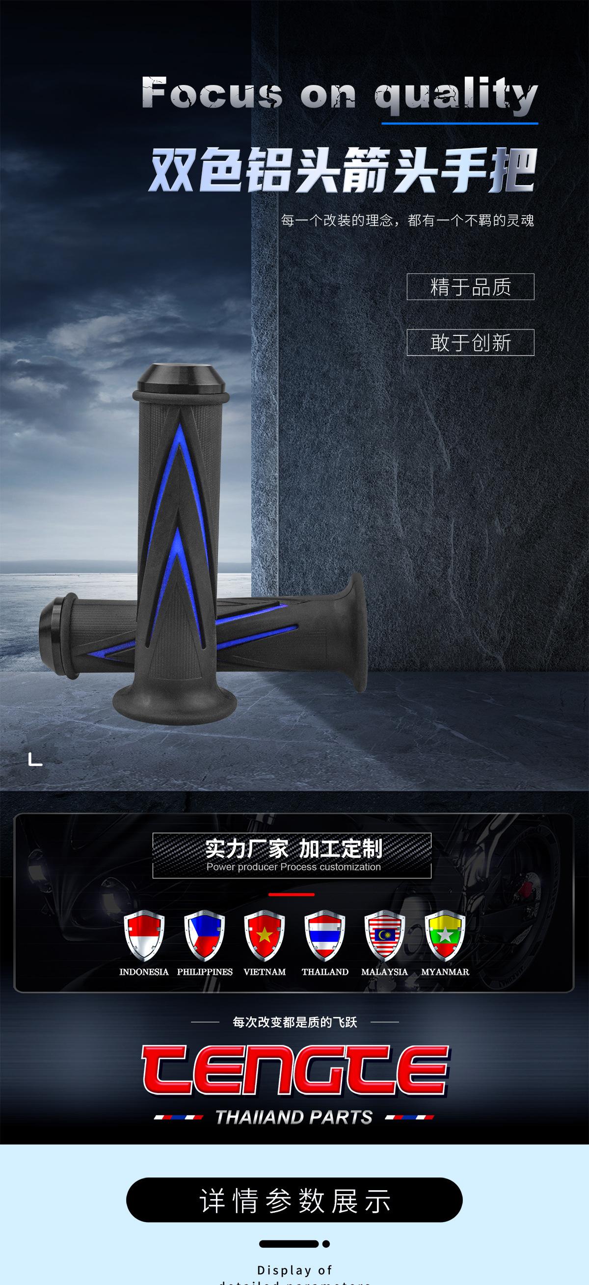 Cubierta de manillar modificada, pegamento para manillar de motocicleta, cabeza de aluminio de dos colores, flecha distintiva, accesorios para cubierta de pegamento para manillar