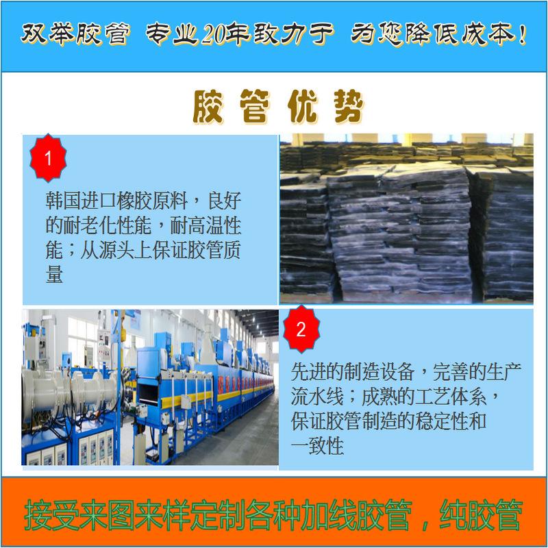 Estructura/Material: Tubo de abrazadera de alambre: (capa interior de caucho + capa de refuerzo de tejido de fibra + capa exterior de caucho) Manguera de caucho completa: (capa exterior de caucho)
