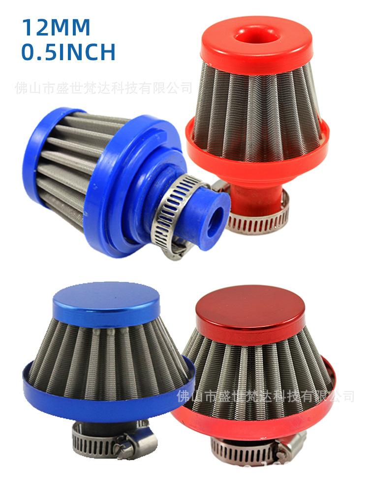 Filtro de Aire de Cabeza de Hongo de Admisión de Aire Secundario 12 mm Coche Modificado Filtro de Aire de Coche Motocicleta Todoterreno Acero Inoxidable