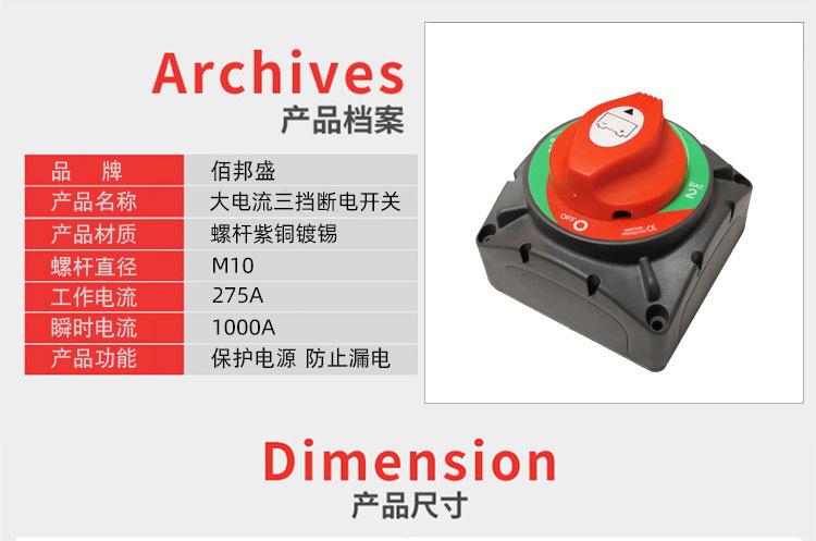 Interruptor de apagado de yate de batería doble de 300 onzas de tres velocidades de corriente súper grande Interruptor de protección de apagado de equipo grande