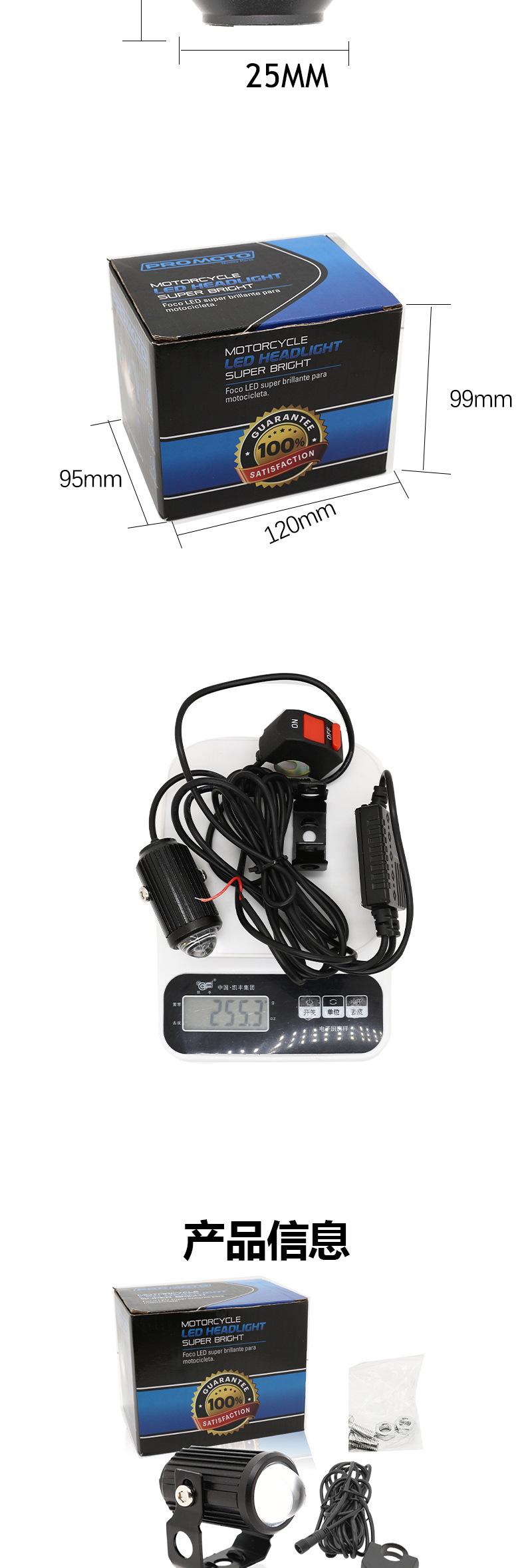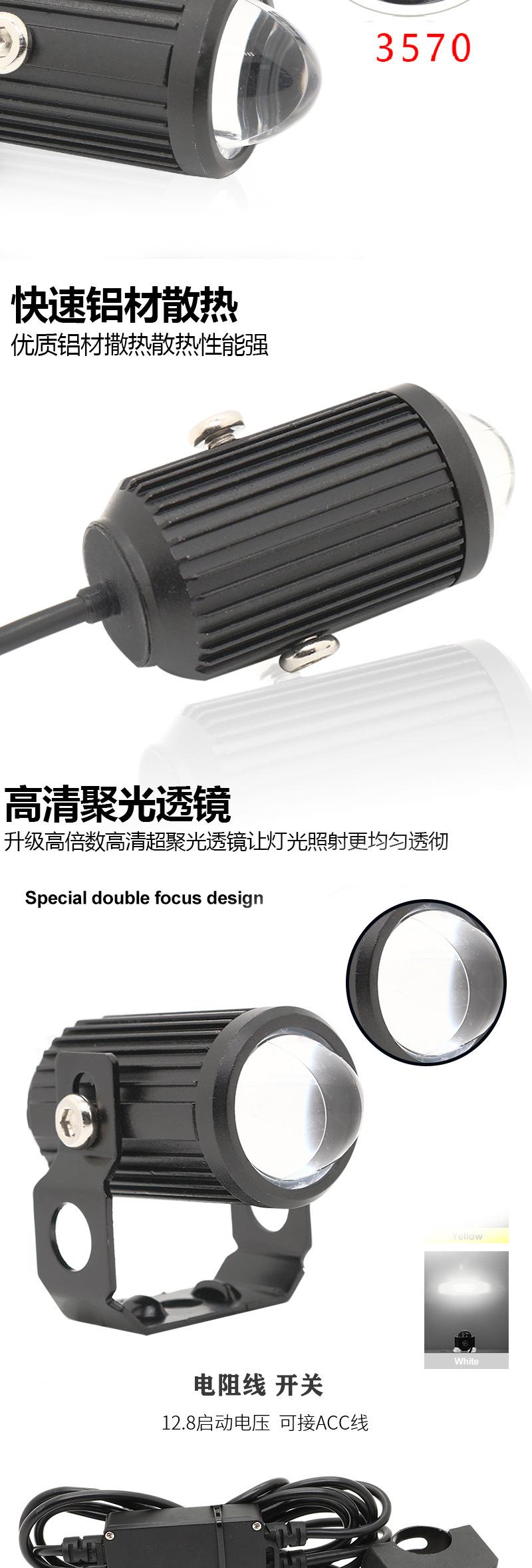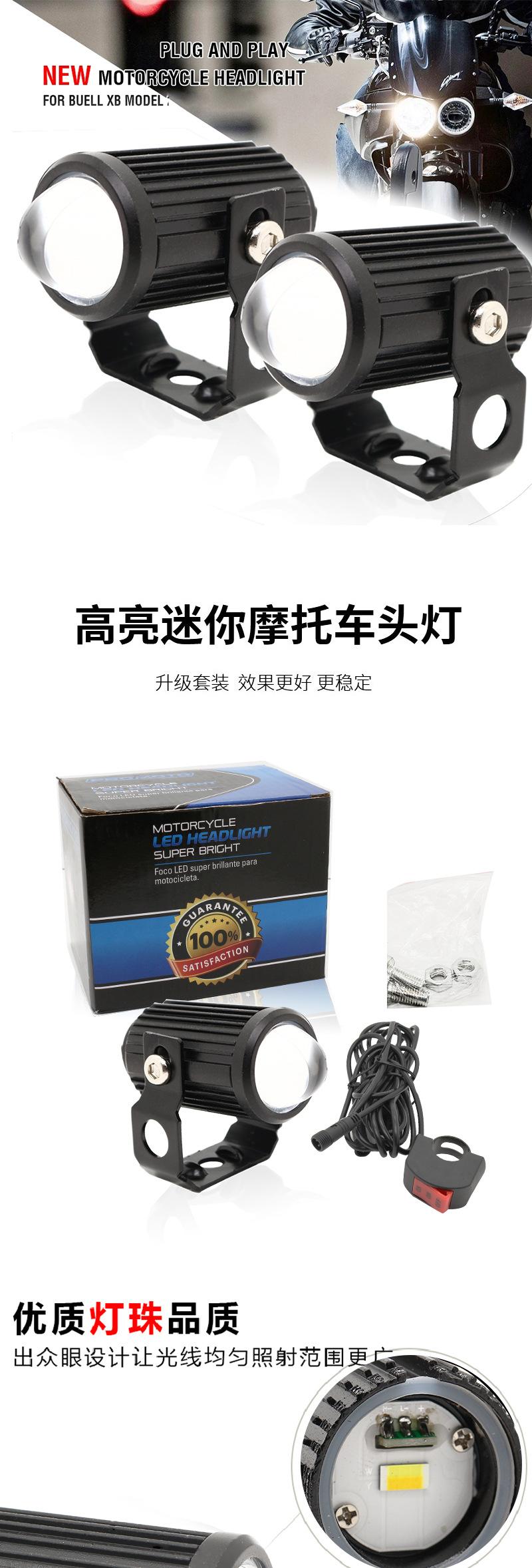 Foco externo para coche eléctrico a batería, foco LED para faro de motocicleta, lente superbrillante, luz de flash de larga distancia y corta distancia.