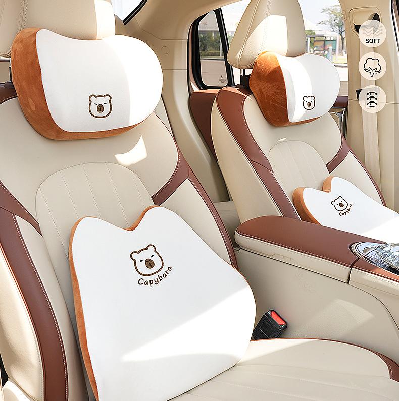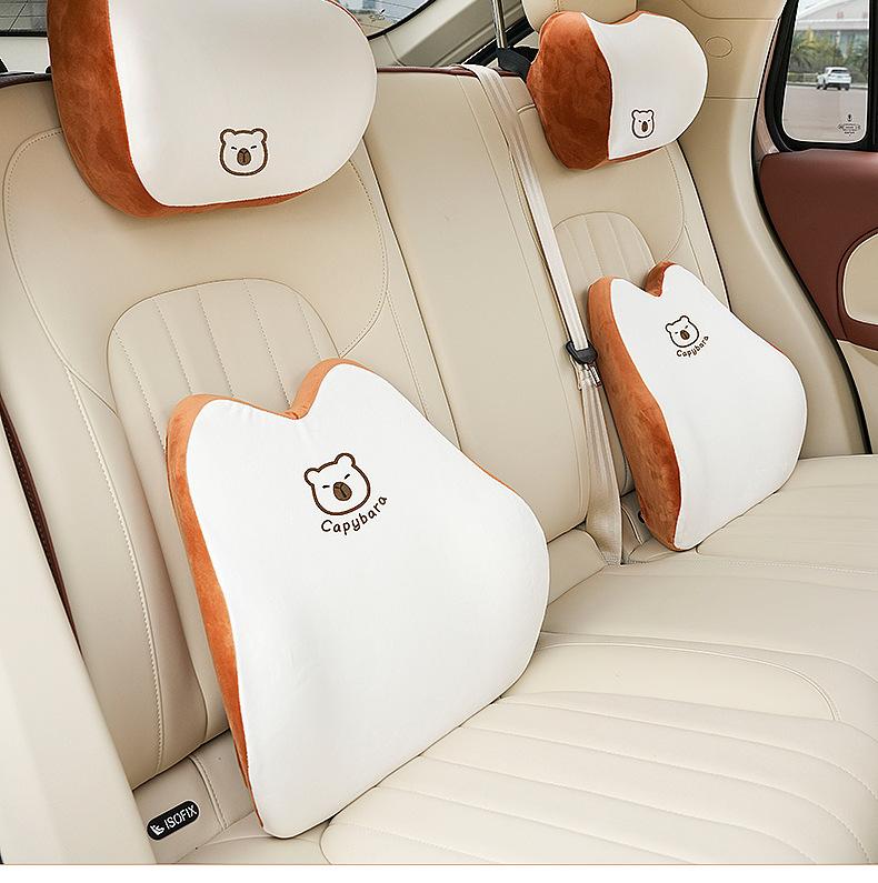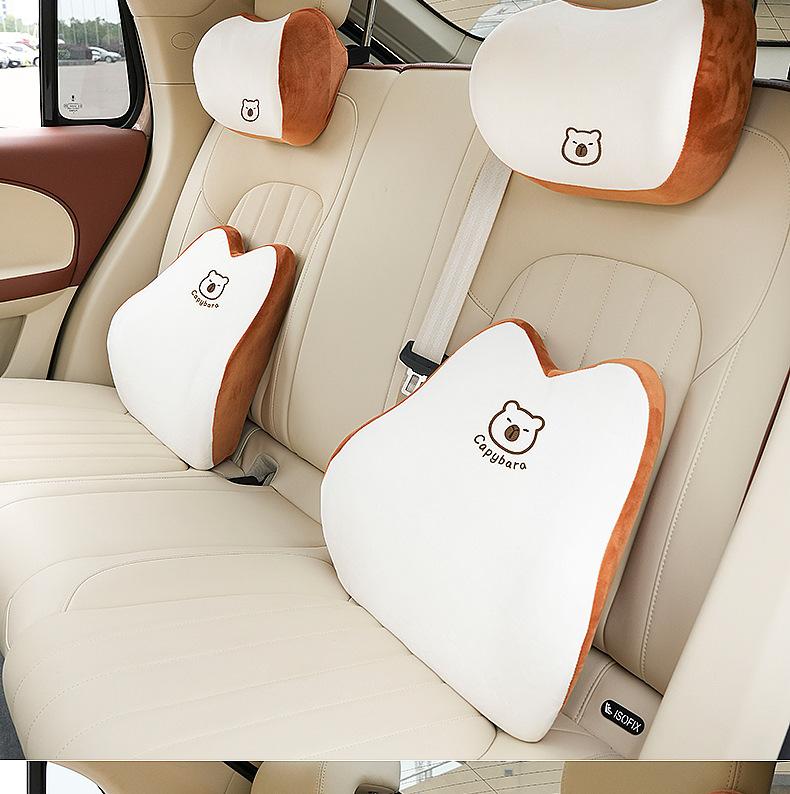 Carpibala reposacabezas de felpa para coche, espuma viscoelástica con rebote, almohada para el cuello del coche, cojín para la espalda, soporte lumbar universal para coche para las cuatro estaciones