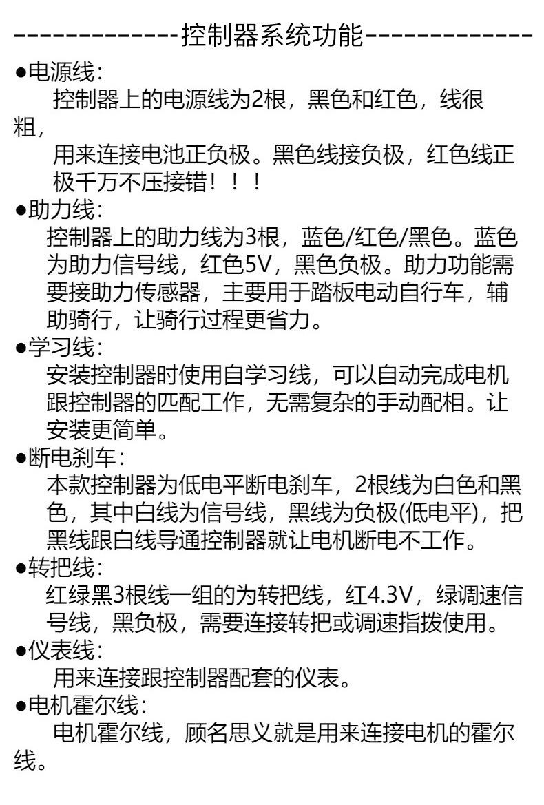 24V36V48V52V60V (controller + TF100 instrument) 1200W/1500W2000W (current 40A-45A)