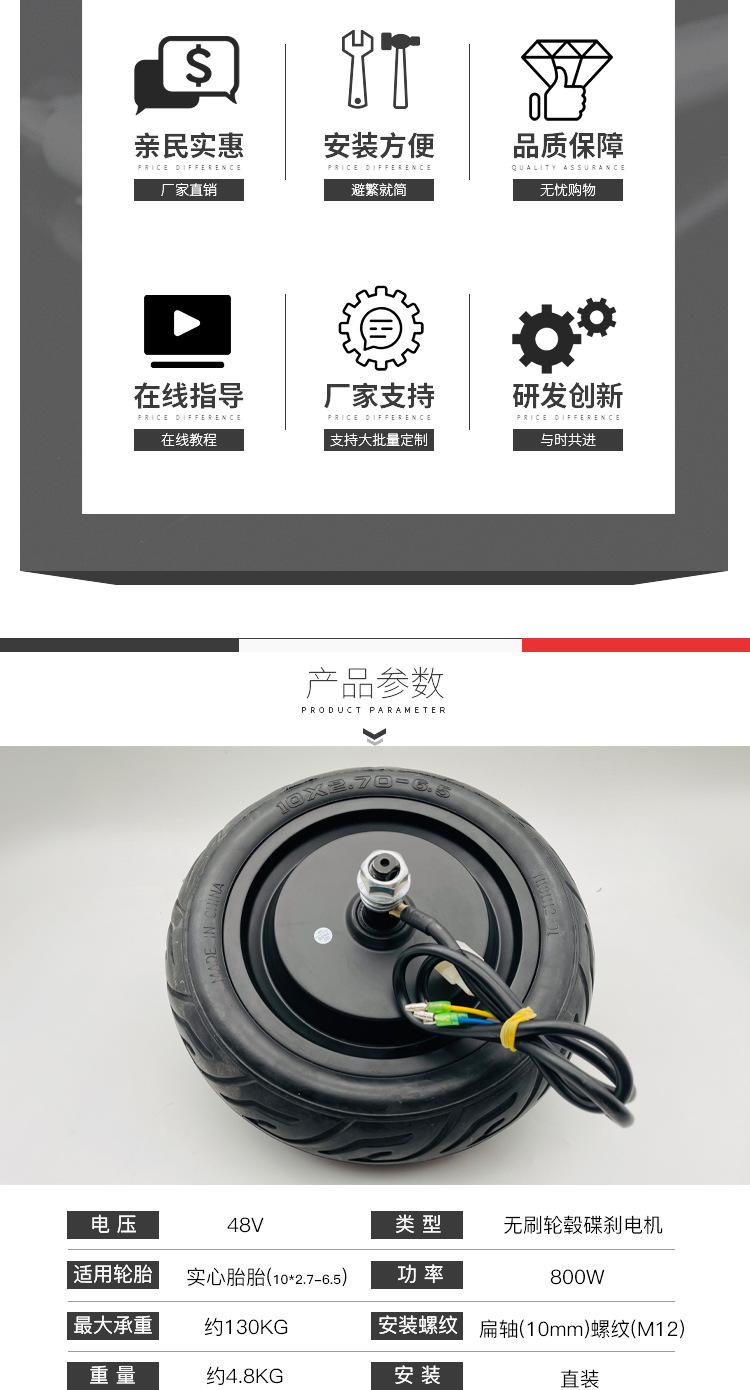 10 Rueda de Freno de Disco con Motor Kit de Modificación para Scooter de Vehículo Eléctrico 48V800W Motor de Cubo de Rueda 10*2.7-6.5