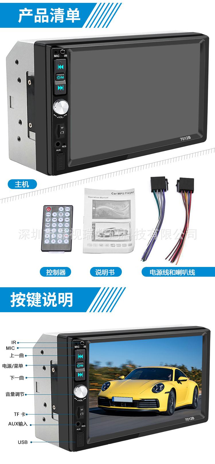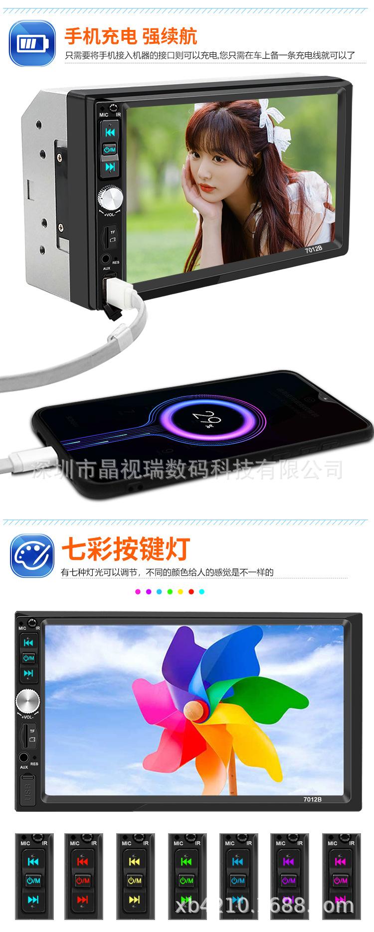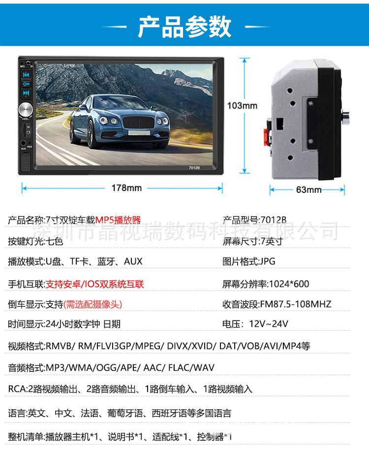 Pantalla grande de 7 pulgadas con doble husillo táctil para coche MP5, Bluetooth, manos libres, Carplay, interconexión de teléfono móvil, imagen de marcha atrás