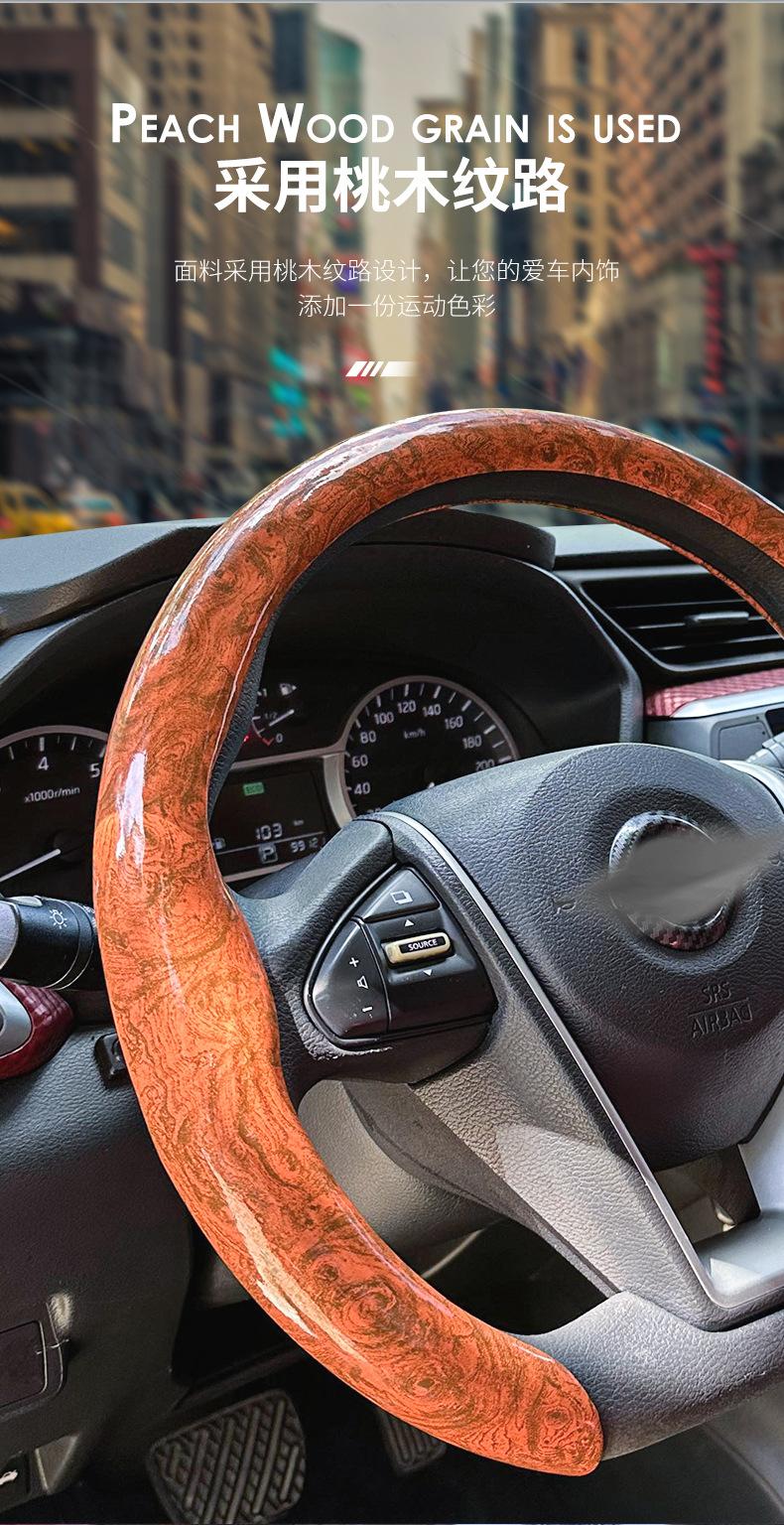 Funda para Volante de Coche, Funda para Volante de Madera de Melocotón de Alta Gama, Nuevo Cuadrado Universal para Cuatro Estaciones Ultrafino Antideslizante Resistente al Desgaste para Coche